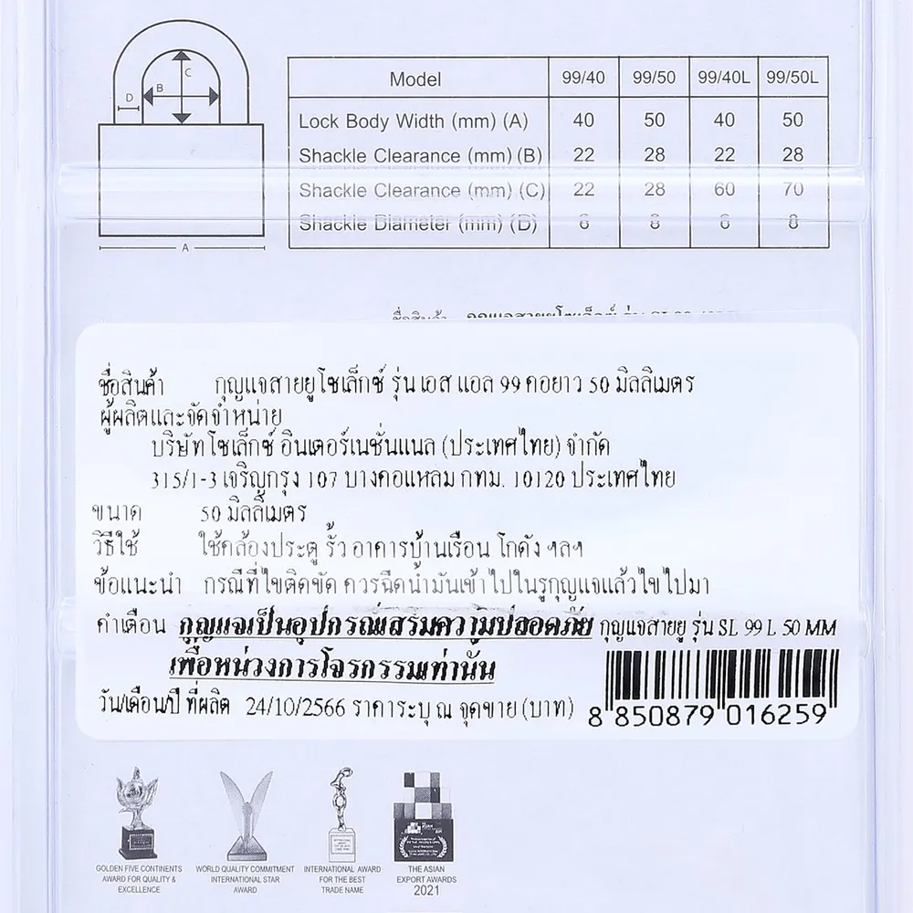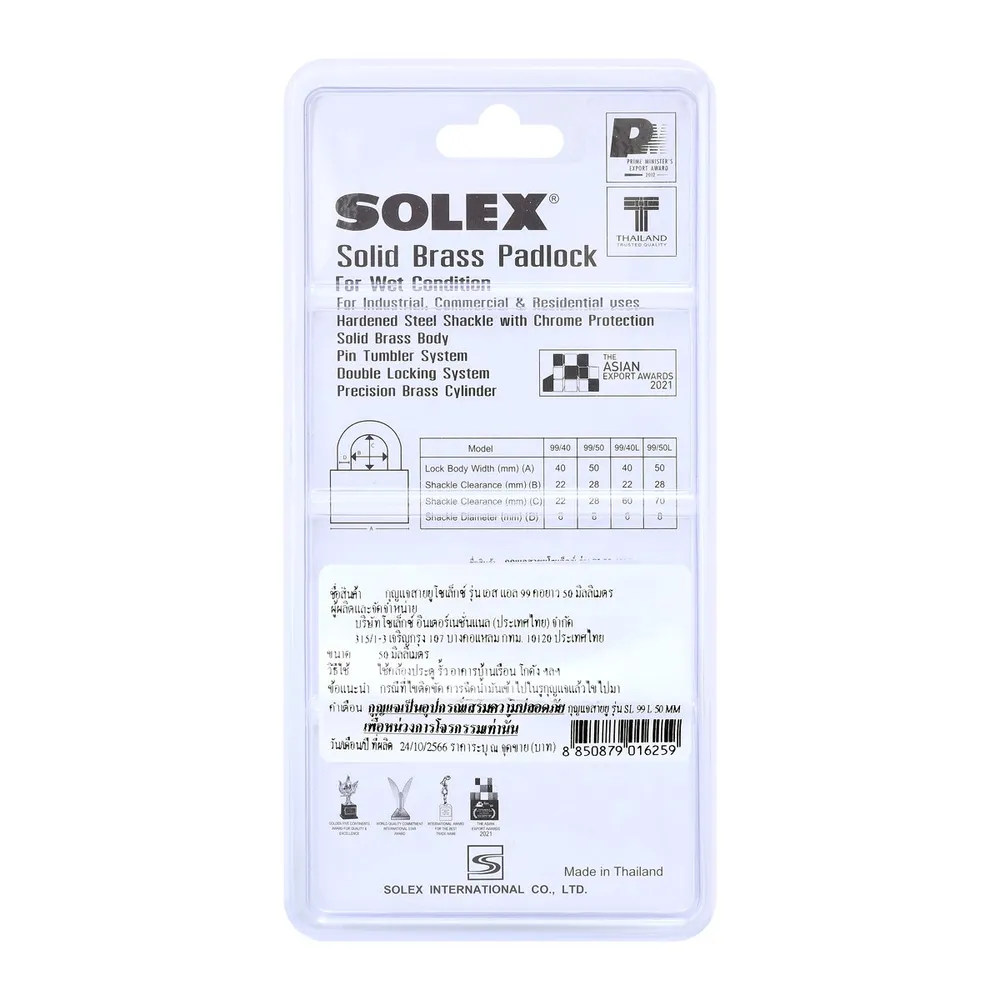 โซเล็กซ์ กุญแจสายยูคอยาว รุ่น SL99 L ขนาด 50 มม.