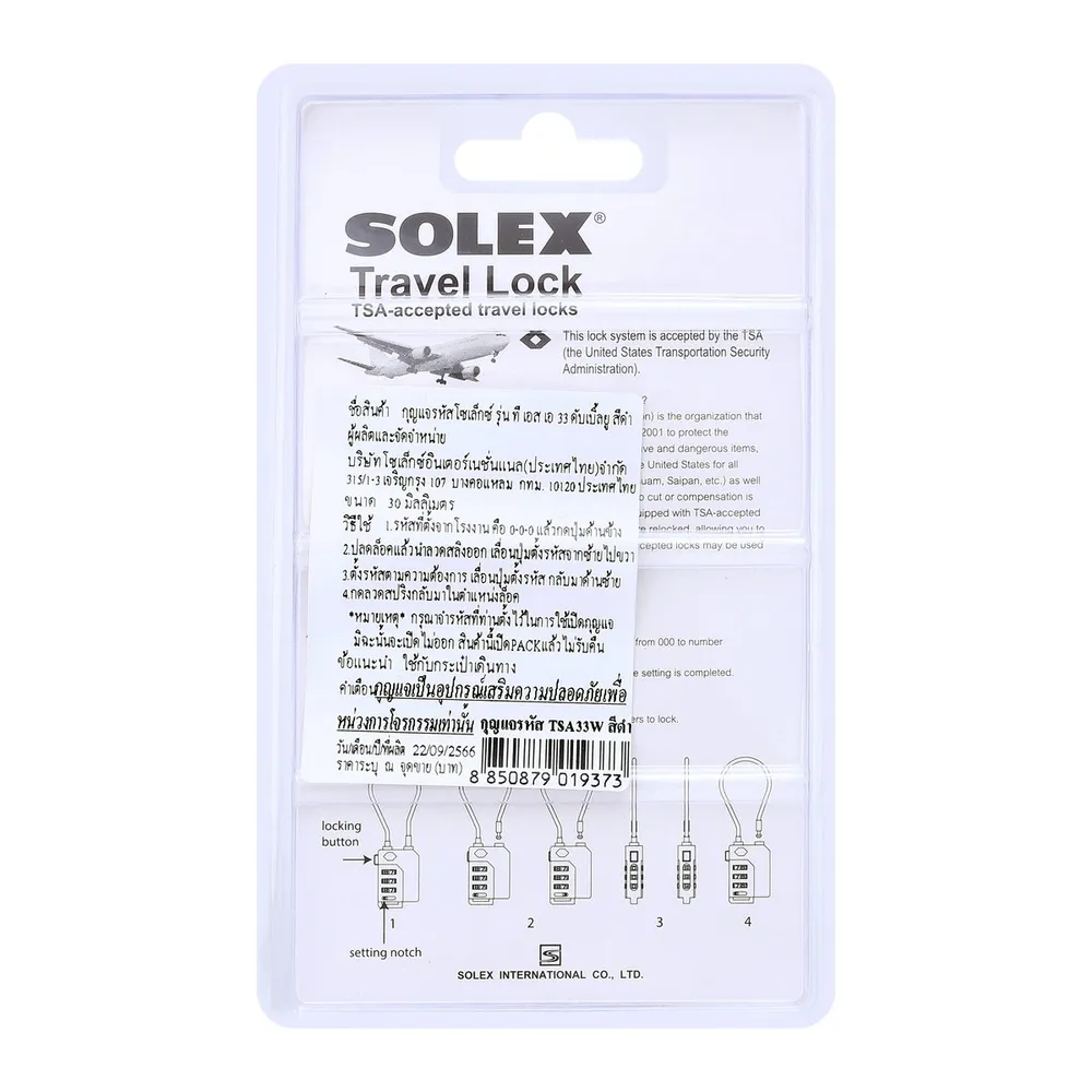 โซเล็กซ์ กุญแจรหัส รุ่น TSA33W ขนาด 30 มม. สีดำ