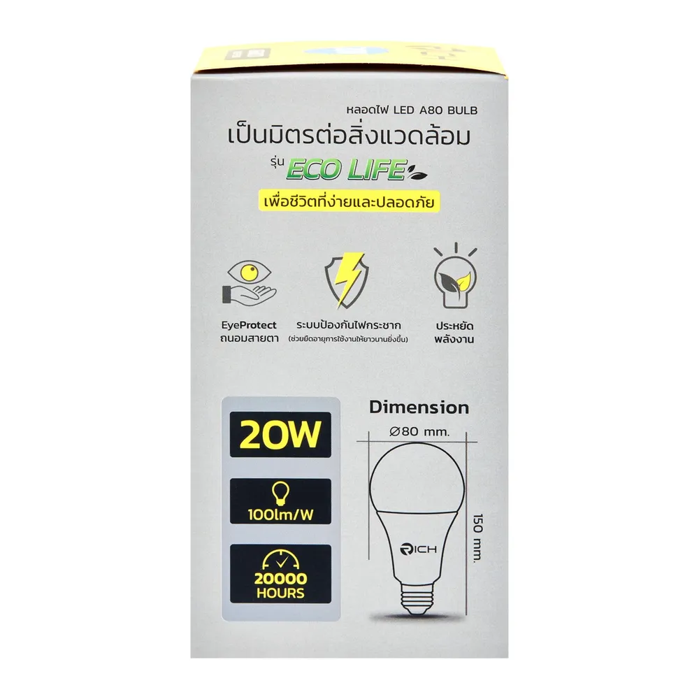 ริช หลอดไฟแอลอีดี รุ่น อีโค่ไลฟ์ 20 วัตต์ แสงขาว เดย์ไลท์ 6500K