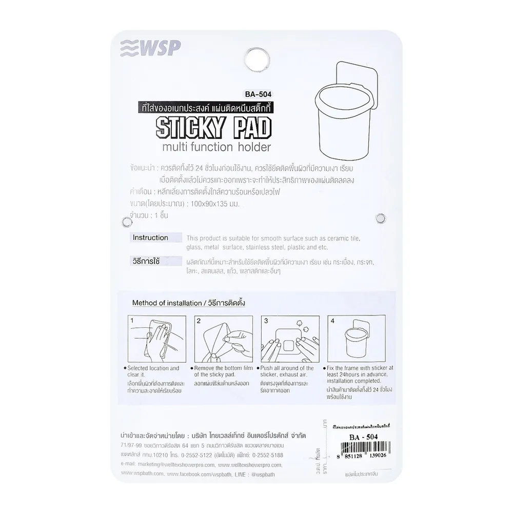 ดับบลิวเอสพี ที่ใส่ของอเนกประสงค์ พร้อมแผ่นติดผนัง รุ่น BA-504 สีขาว