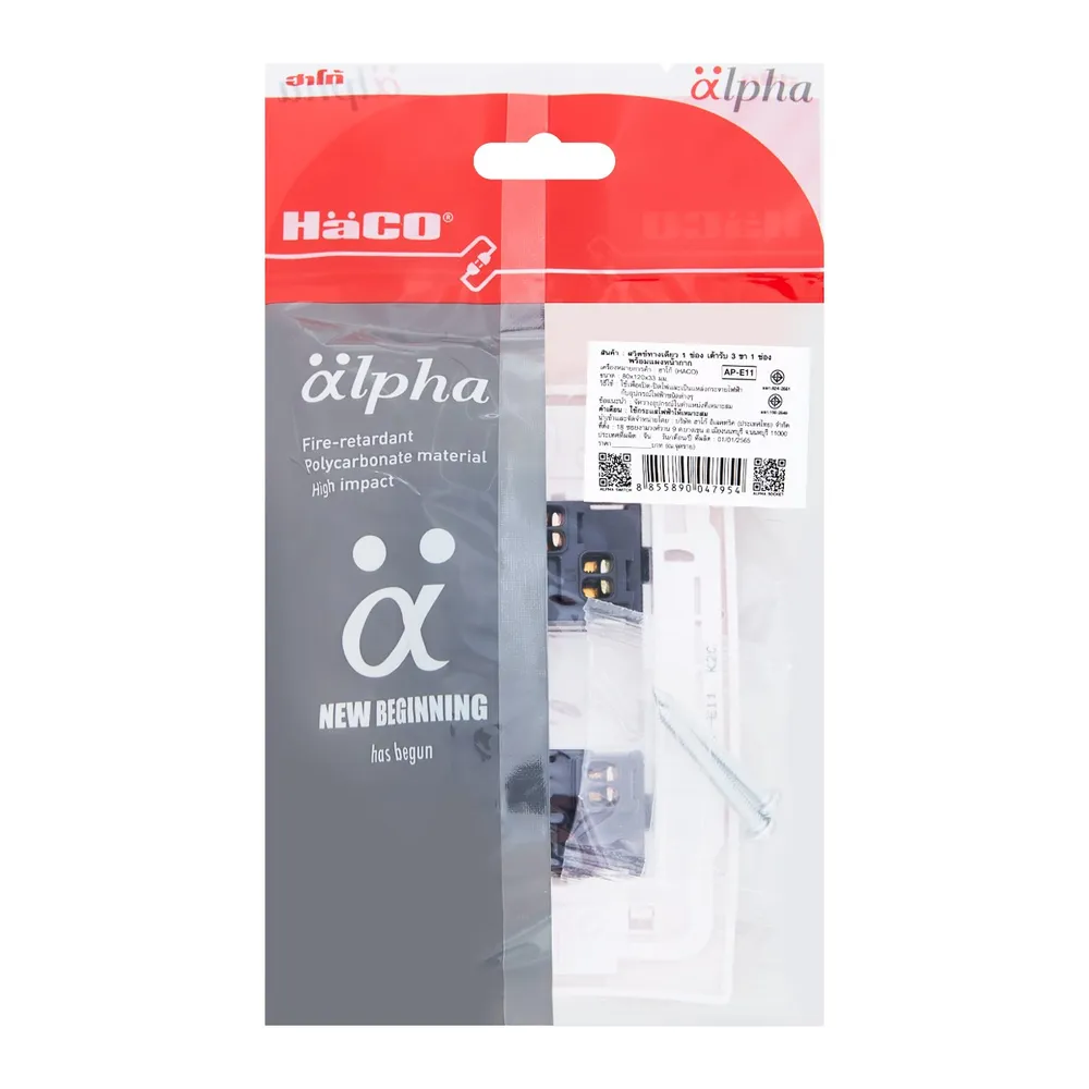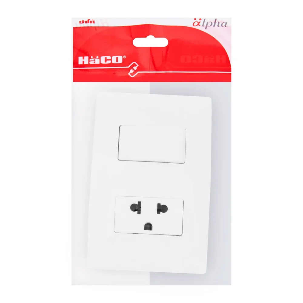 ฮาโก้ สวิตช์ทางเดียว 1 ช่อง เต้ารับ 3 ขา 1 ช่อง พร้อมแผงหน้ากาก