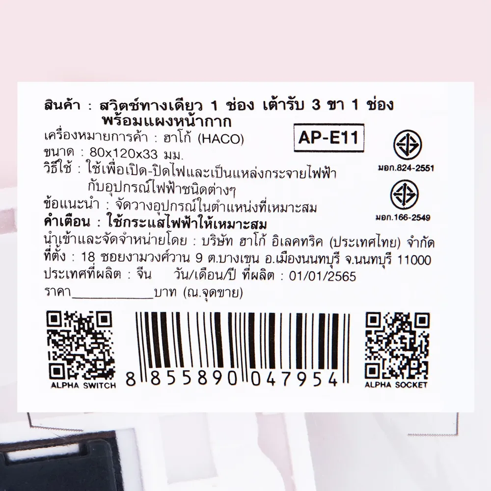 - เลขที่มอก.: มอก.824-2551 / มอก.166-2549<br />
