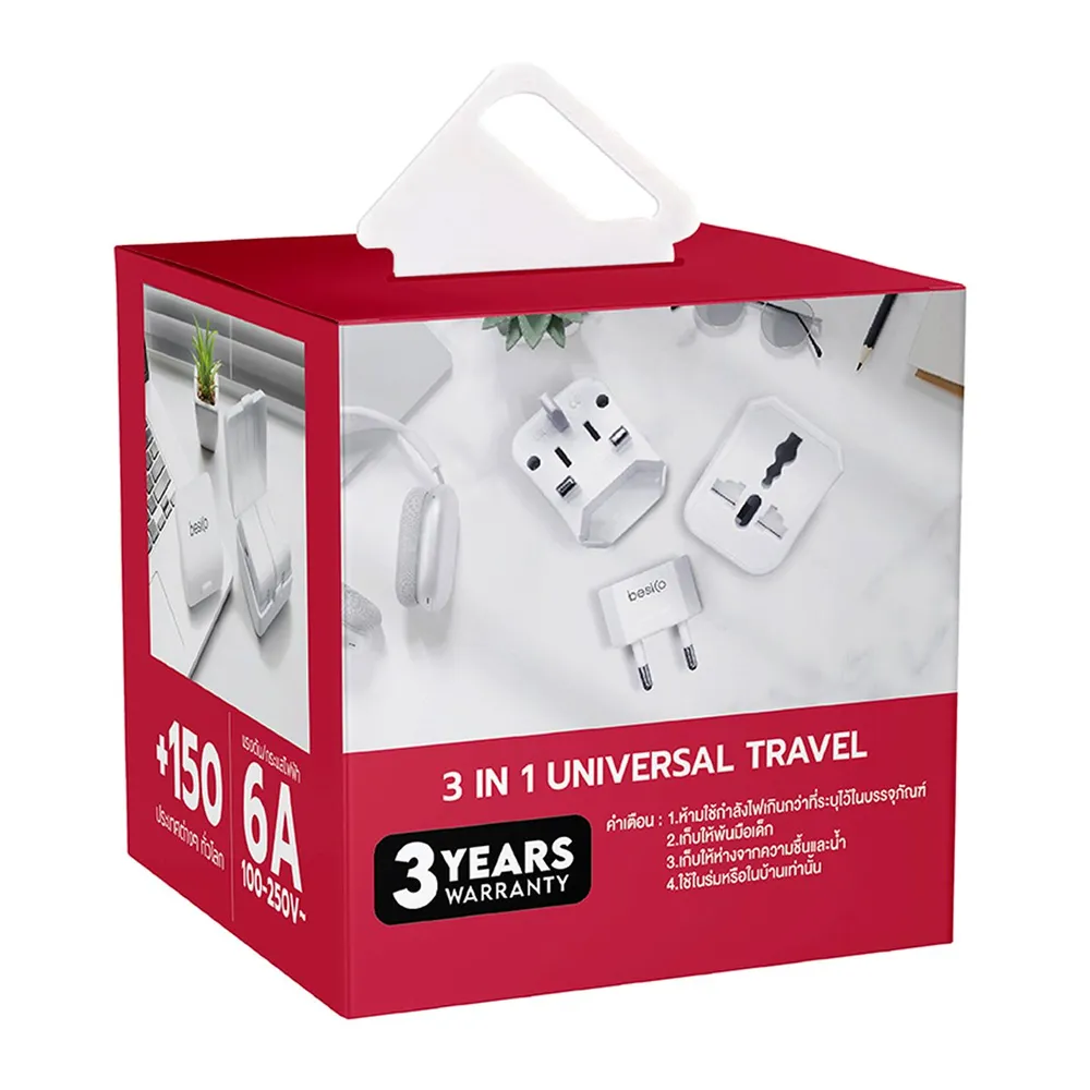 - ปลั๊กแปลงอเนกประสงค์ 3 รูปแบบในหนึ่งเดียว บอดี้วัสดุ PC ทนความร้อนสูงและไม่ลามไฟ<br />