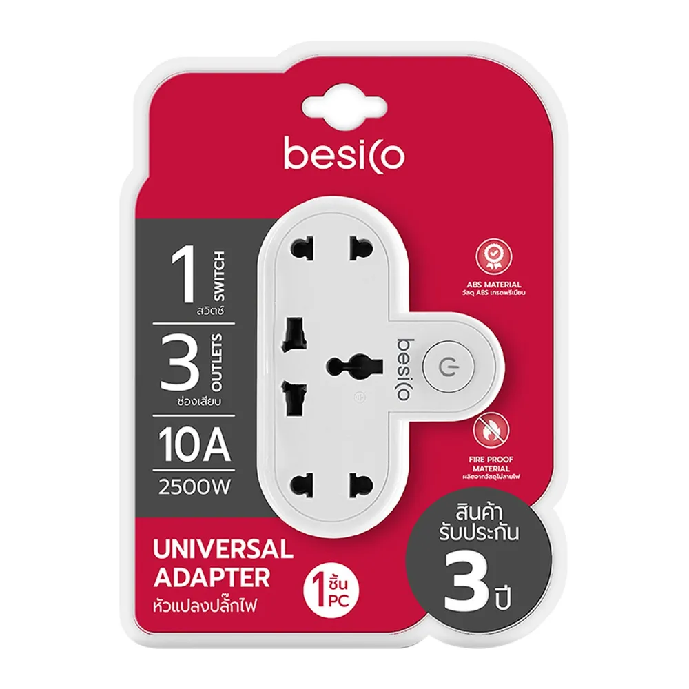 เบสิโค อะแดปเตอร์ 3 ช่อง 1 สวิตช์ 2500W รุ่น F5ADP-BC01-1300 สีขาว