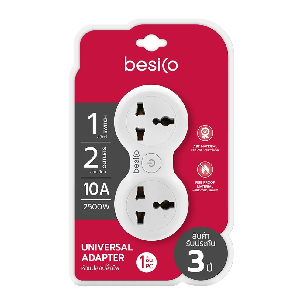 เบสิโค อะแด็ปเตอร์ 2 ช่อง 1 สวิตช์ 2500W รุ่น F5ADP-BC01-1200 สีขาว