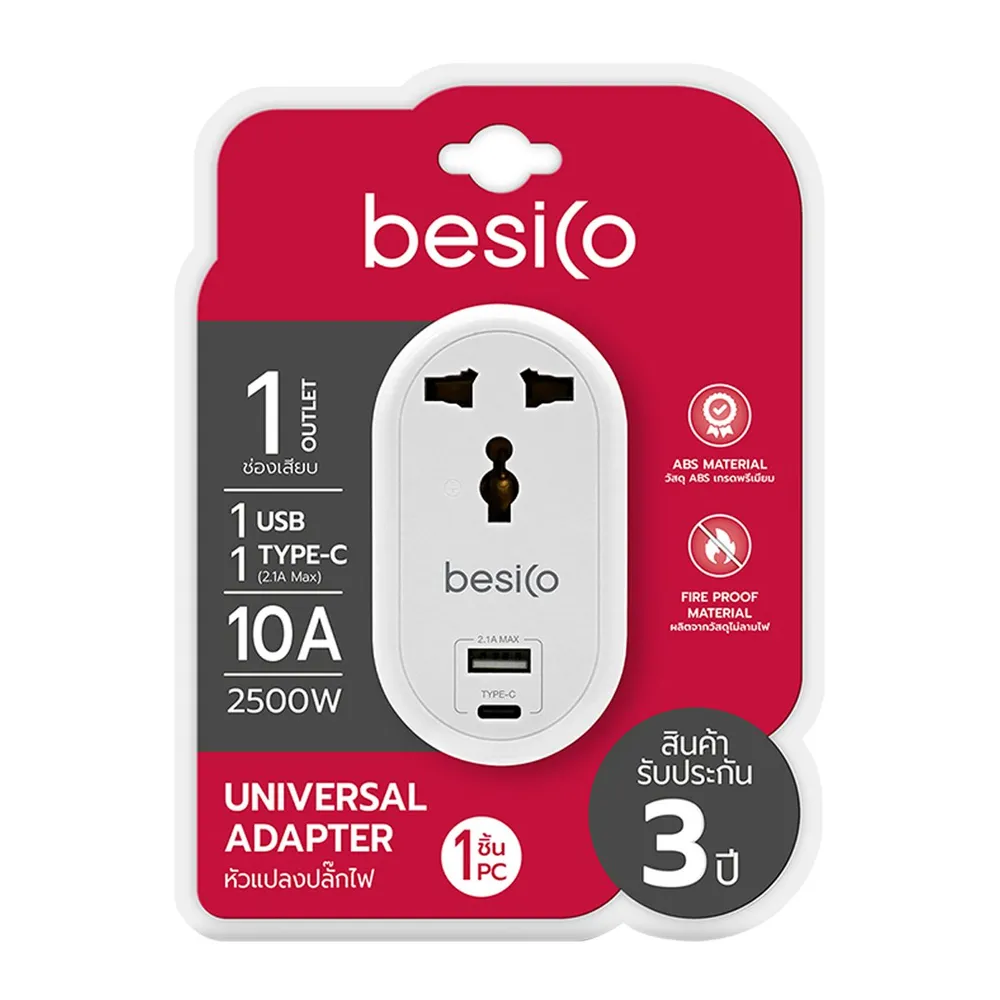 เบสิโค หัวแปลง 1 ช่อง 1USB 1C (2.1A) รุ่น F5ADP-BC01-0120 สีขาว