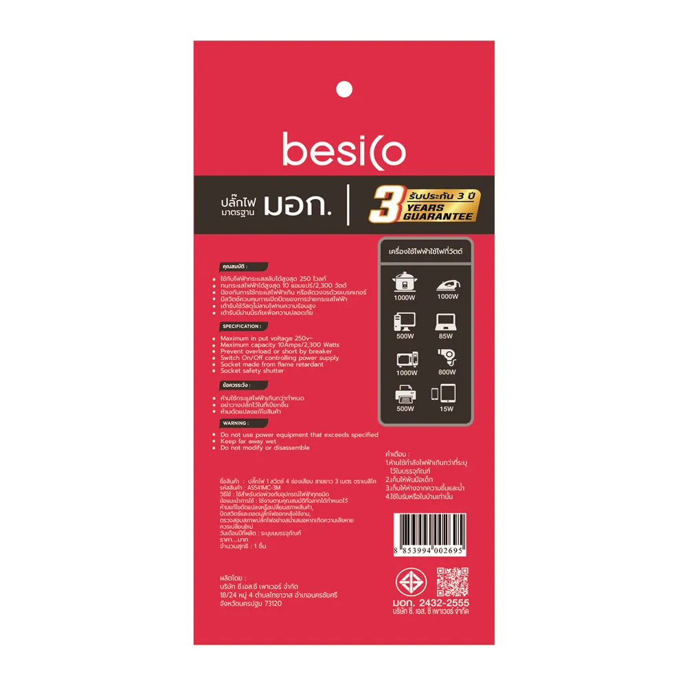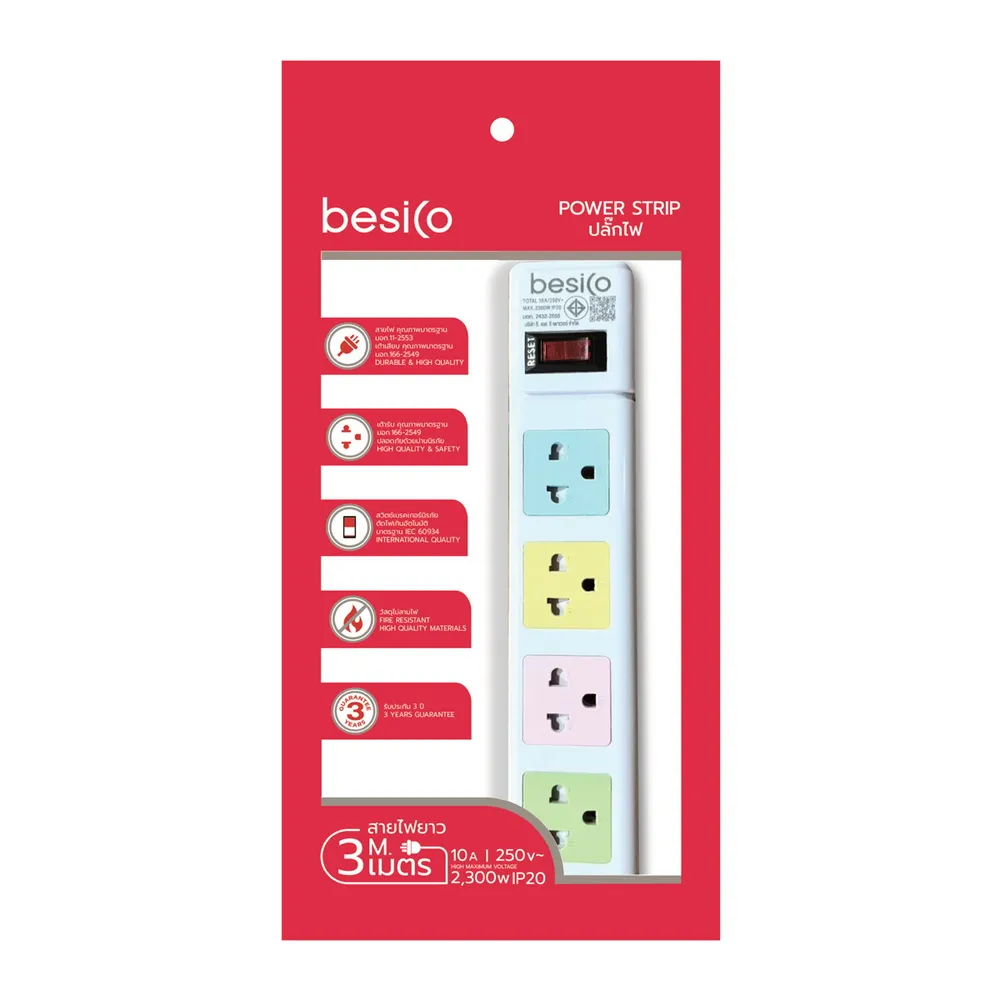 เบสิโค ปลั๊กไฟ คุณภาพมาตรฐาน มาพร้อมดีไซน์สวยงามและทันสมัย ฟังก์ชันการใช้งานครบครัน สะดวกสบาย ผลิตจากวัสดุที่มีคุณภาพ ผ่านกระบวนการการผลิตที่ได้มาตรฐาน แข็งแรง ทนทาน<br />