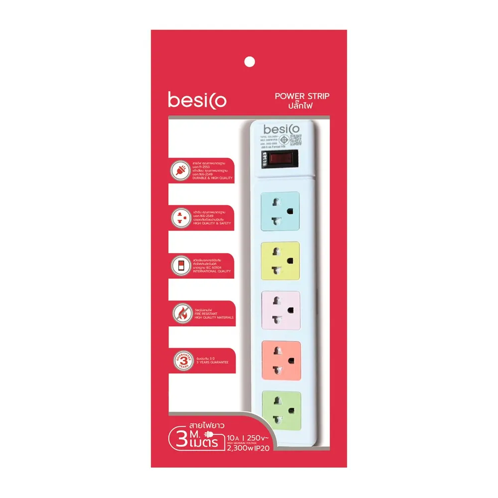 <p>เบสิโค ปลั๊กไฟ 1 สวิตซ์ 5 ช่อง สายยาว 3 ม.<br />