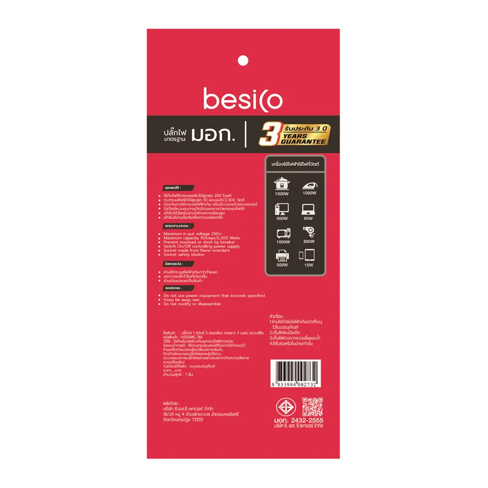 เบสิโค ปลั๊กไฟ 1 สวิตซ์ 5 ช่อง สายยาว 3 ม.