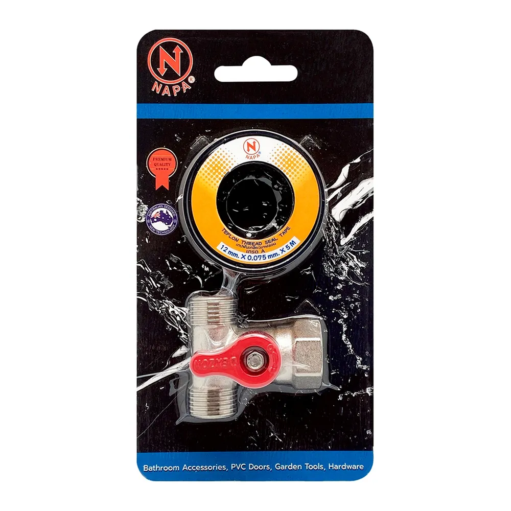 นาป้า มินิบอลวาล์ว 2 ทาง 1/2 นิ้ว + เทปพันเกลียวยาว 5 ม.