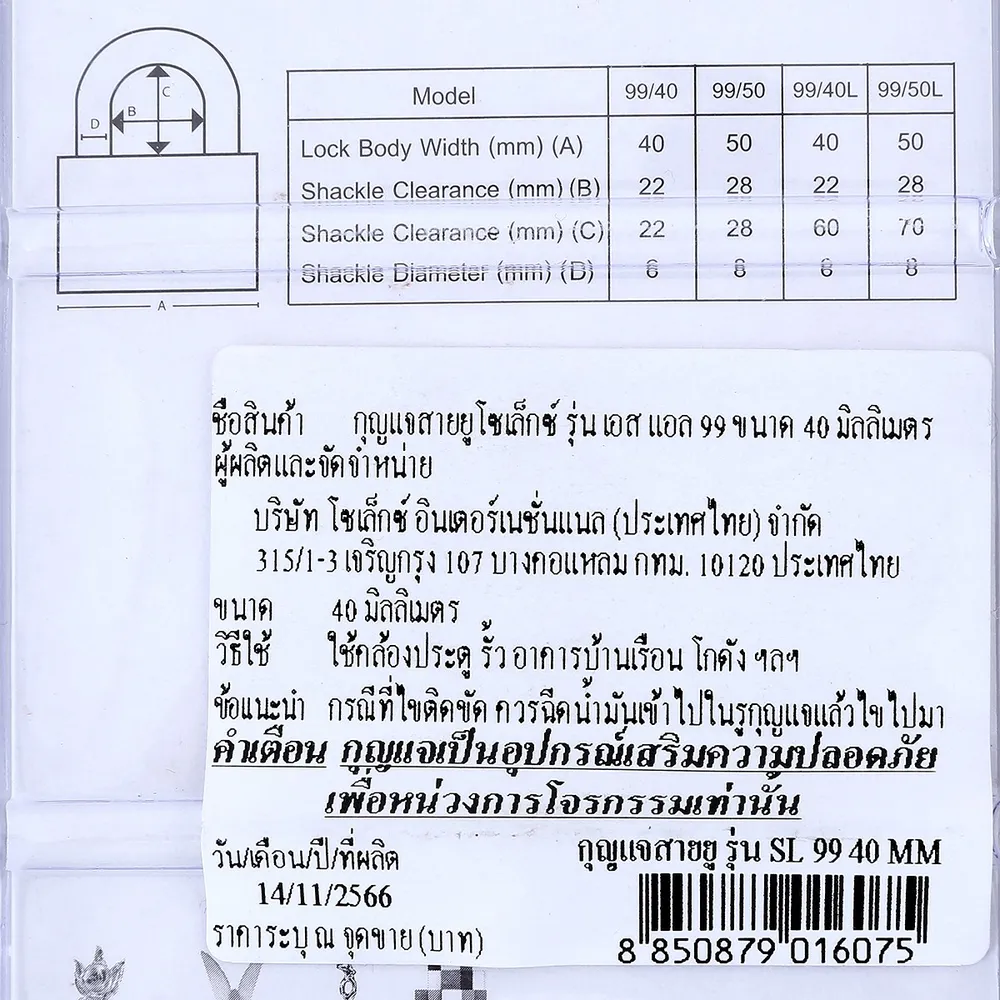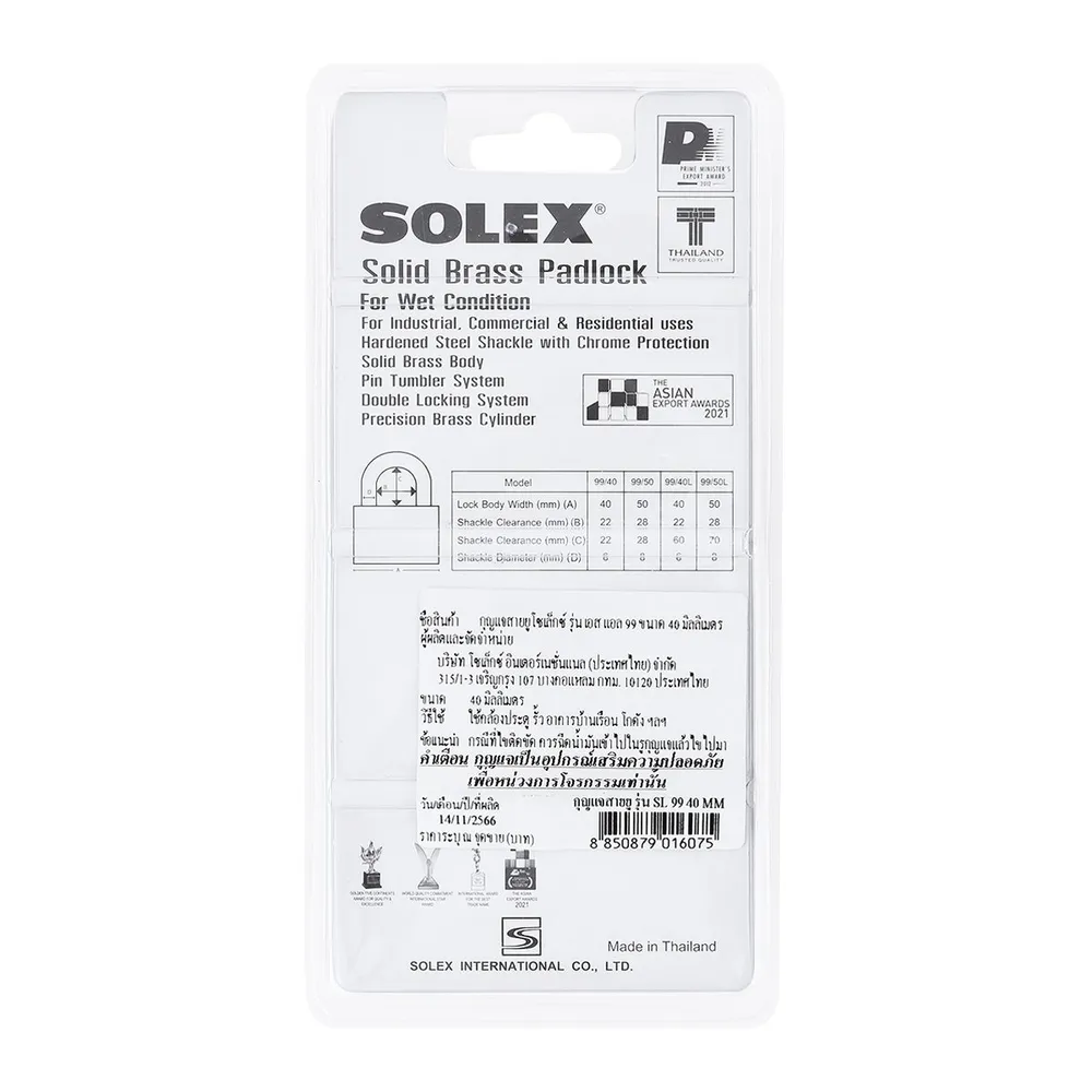 <p>โซเล็กซ์ กุญแจสายยู รุ่น SL99 40 มม.<br />