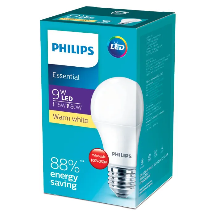 ฟิลิปส์ หลอดประหยัดไฟ LED 9 วัตต์ รุ่น ESSENTIAL BULB โทนแสงสีเหลือง