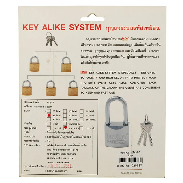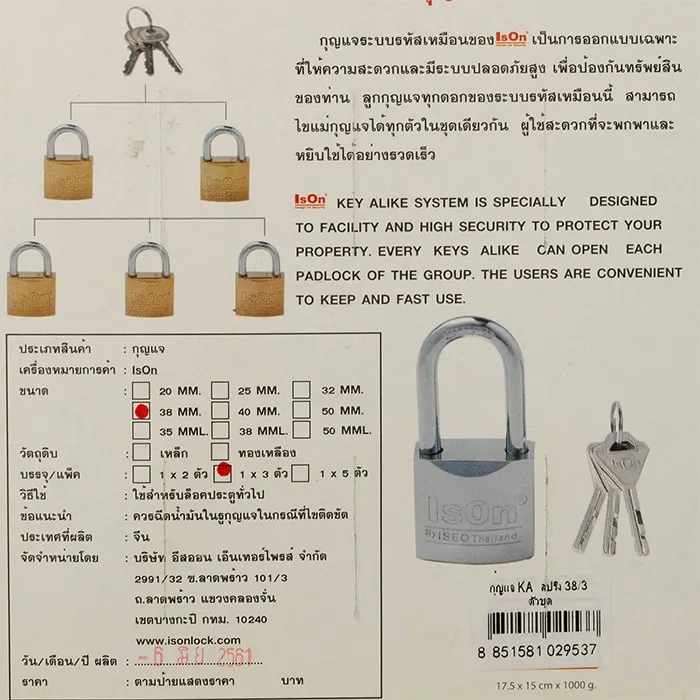 <p>อีสออน กุญแจสปริงเหล็กสีทอง 38 มม. แพ็ก 3<br /><br />ให้คุณได้คล้องล็อกประตูบ้าน รั้วบ้าน ตู้จดหมาย ตู้ล็อคเกอร์ ลิ้นชัก ได้อย่างปลอดภัยด้วย อีสออน กุญแจสปริงเหล็กสีทอง 38 มม. มีความแข็งแรง ทนทานต่อการใช้งาน ไส้กุญแจไขปลดล็อกได้ง่ายดาย ไม่ฝืด หรือติดขัด ป้องกันการงัดแงะ และการโจรกรรมได้อย่างดีเยี่ยม <br /><br />- ล็อคได้แน่นหนา มีความปลอดภัยสูง<br />- ตัวเรือนผลิตจากเหล็ก ชุบสีทองอย่างดี<br />- น้ำหนักเบา ขนาดกะทัดรัด สะดวกต่อการใช้งาน และการจัดเก็บ<br />- แข็งแรง ทนทานต่อการงัดแงะ และการเจาะด้วยสว่าน<br />- มาพร้อมกับดอกกุญแจ บิดหมุนได้ลื่นไหล ไม่ติดขัด<br /> <br />*ภาพประกอบใช้เพื่อการโฆษณาเท่านั้น</p>