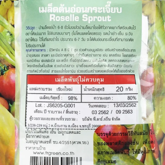 กรีนการ์เด้น เมล็ดพันธุ์ต้นอ่อนกระเจี๊ยบ ขนาดบรรจุ 20 ก.