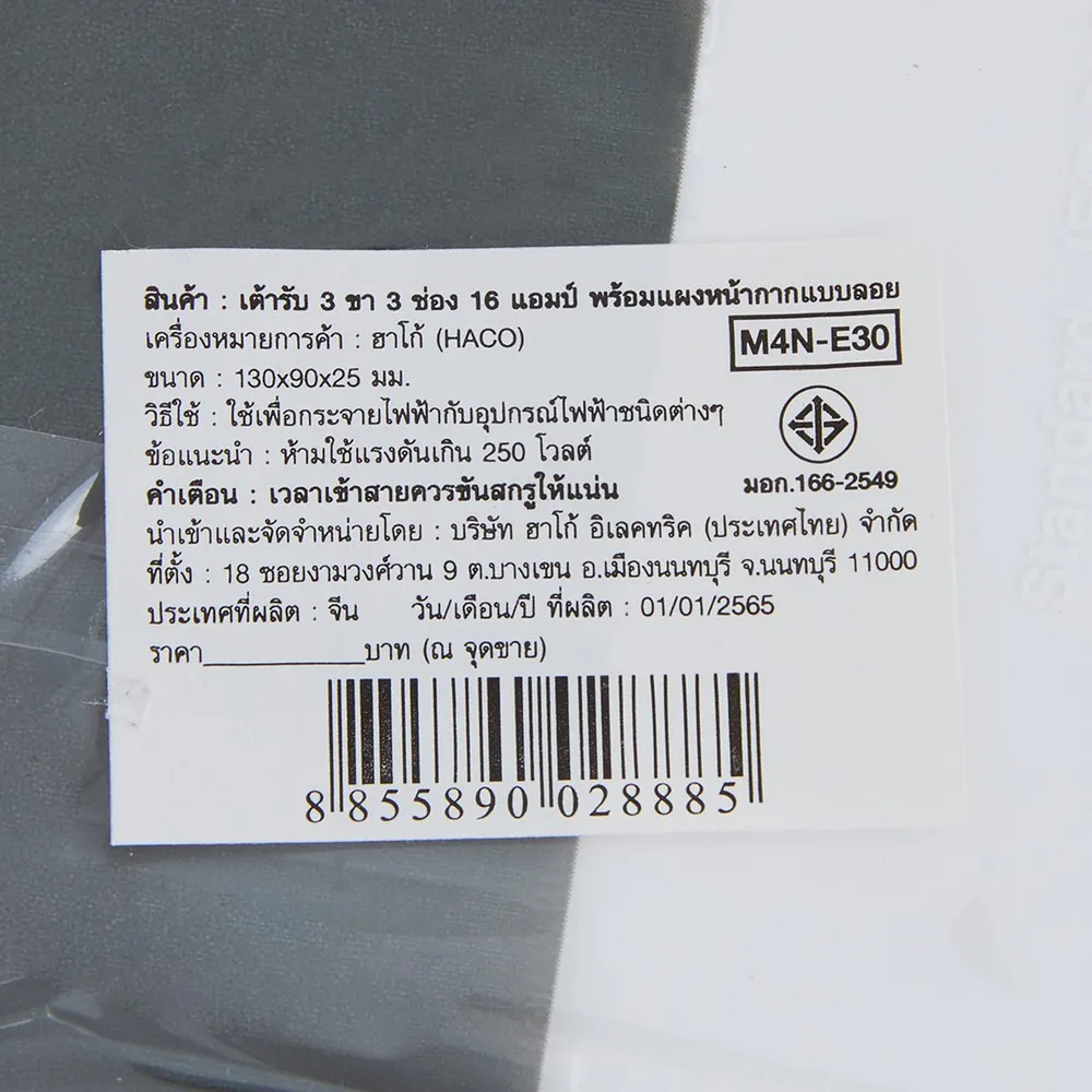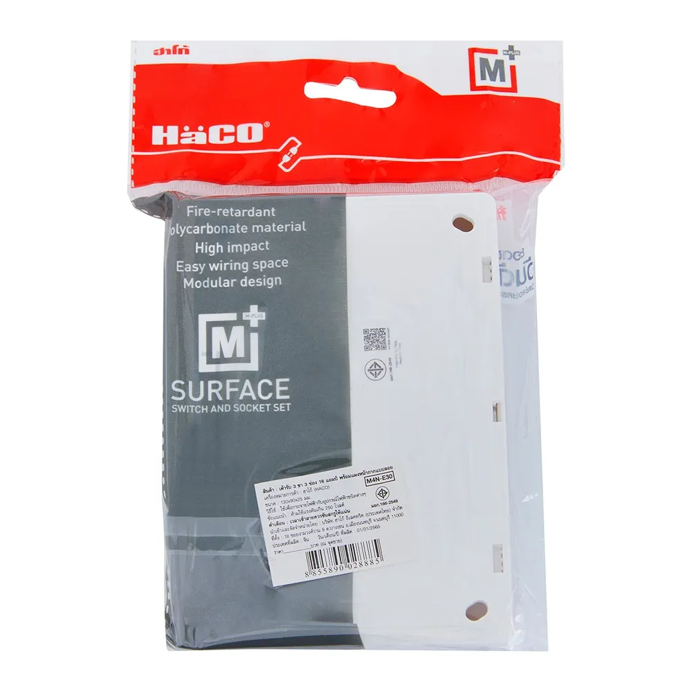 ฮาโก้ เต้ารับ 3 ขา 3 ช่อง 16 แอมป์ พร้อมแผงหน้ากากแบบลอย ขนาด 130 x 90 x 25 มม.
