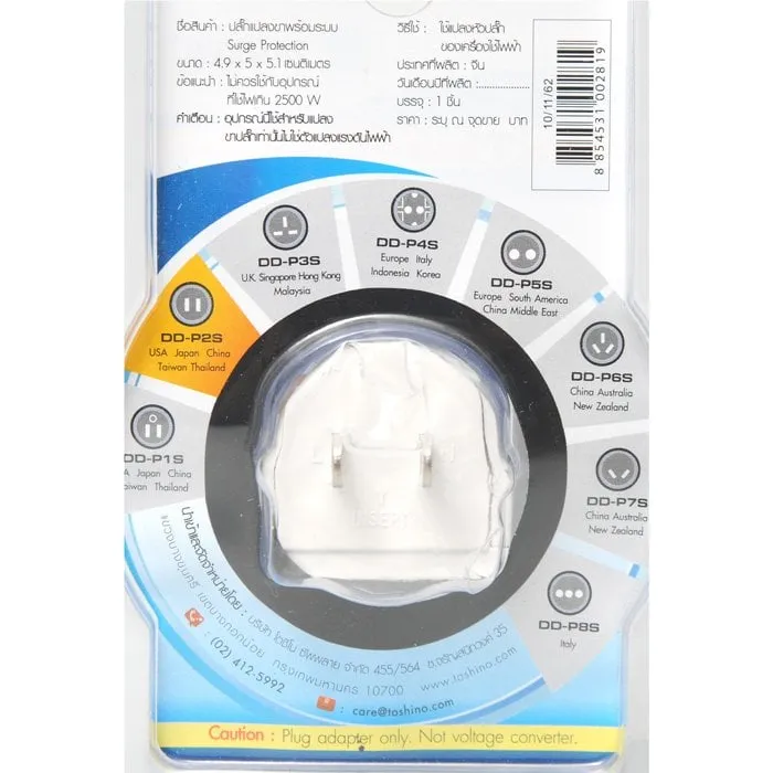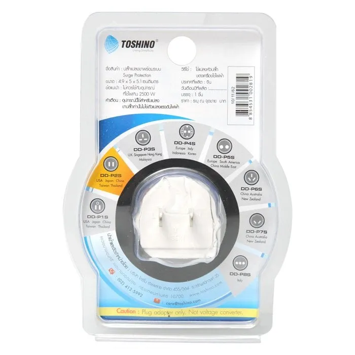 โตชิโน ปลั๊กแปลงขา พร้อมระบบ Surge Protection ขนาด 4.9 x 5 x 5.1 ซม.