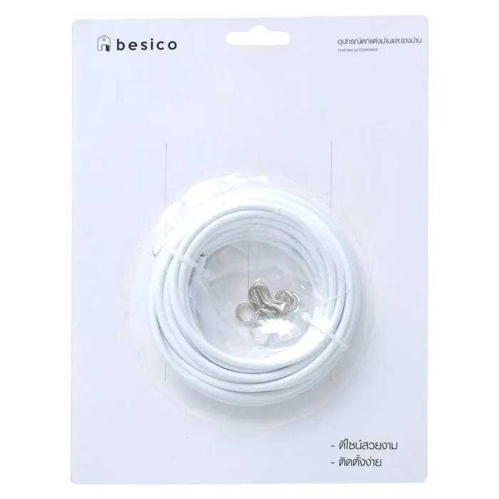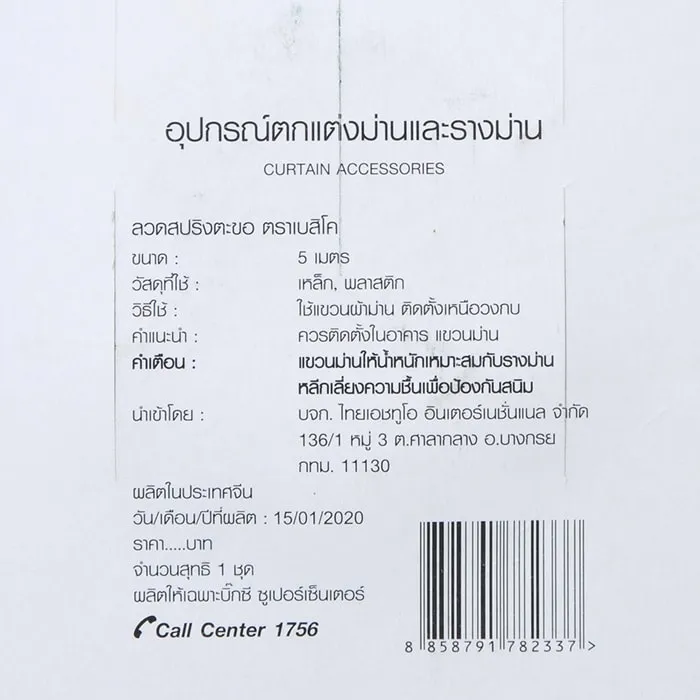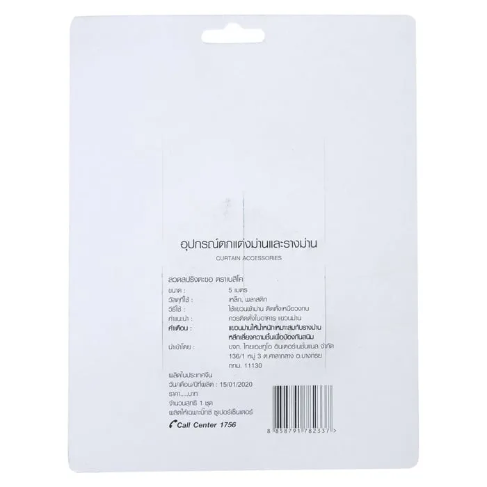 <p>เบสิโค ลวดสปริงตะขอ ขนาด 5 ม.<br /><br />เสริมความสวยงามให้กับผ้าม่าน สร้างความโดดเด่นภายในบ้าน ด้วยลวดสปริงตะขอ ขนาด 5 ม. อุปกรณ์ตกแต่งม่านและรางม่านคุณภาพดีจากเบสิโค ดีไซน์สวยงาม ติดตั้งง่าย ใช้แขวนผ้าม่าน ติดตั้งเหนือวงกบ<br /><br />- ลวดสปริงตะขอ ขนาด 5 ม. ทำจากเหล็กและพลาสติก<br />- แข็งแรงทนทาน ใช้งานได้นาน<br />- ดีไซน์สวยงาม ติดตั้งง่าย<br />- ใช้แขวนผ้าม่าน จัดเป็นชุดพร้อมกับตะขอเกี่ยว<br />- ควรติดตั้งภายในอาคาร แขวนม่านให้น้ำหนักเหมาะสมกับรางม่าน<br /><br />*ภาพประกอบใช้เพื่อการโฆษณาเท่านั้น</p>