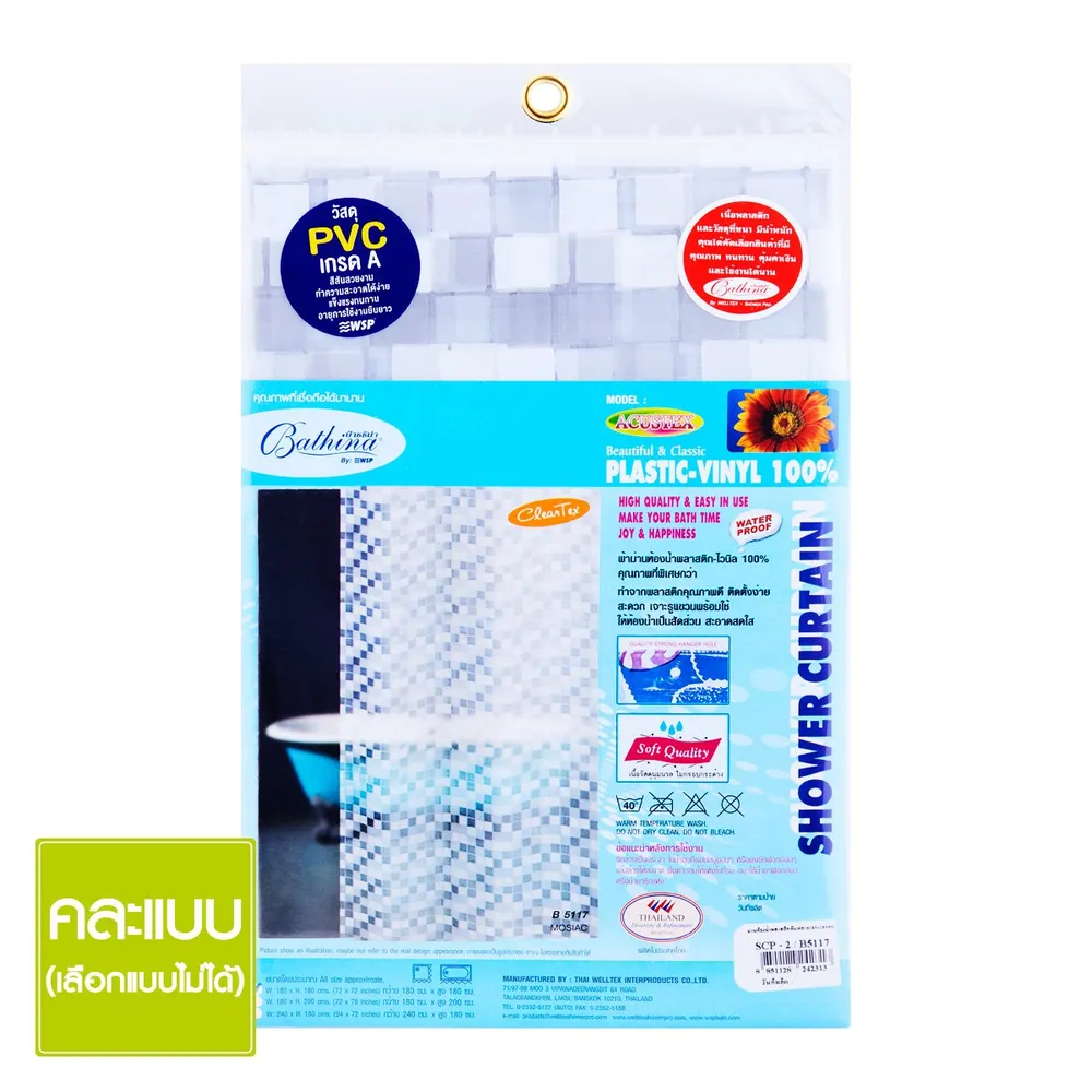 <p>บ๊าธธิน่า ม่านห้องน้ำพลาสติก PVC รุ่น SCP-2 ACUSTEX ลายตาราง ขนาด 180x180 ซม.<br /><br />ตกแต่งห้องน้ำให้สวยงามด้วย ม่านห้องน้ำพลาสติก PVC รุ่น SCP-2 ACUSTEX ผลิตจากพลาสติก PVC อย่างดี ช่วยป้องกันน้ำกระเด็นในขณะอาบน้ำได้เป็นอย่างดี ออกแบบมาอย่างเรียบง่าย สีสันสวยงาม เหมาะกับทุกการตกแต่ง<br /><br />- ม่านห้องน้ำพลาสติก PVC รุ่น SCP-2 ACUSTEX<br />- ผลิตจากพลาสติก PVC เนื้อนุ่ม ไม่กระด้าง <br />- สีสันสวยงาม เรียบง่าย<br />- ช่วยป้องกันน้ำให้ออกนอกพื้นที่อาบน้ำได้เป็นอย่างดี<br />- การทำความสะอาดโดยใช้แชมพูหรือสบู่อ่อนๆ ทำความสะอาด และพึ่งให้แห้งในที่ร่ม<br /><br />*ภาพประกอบใช้เพื่อการโฆษณาเท่านั้น</p>