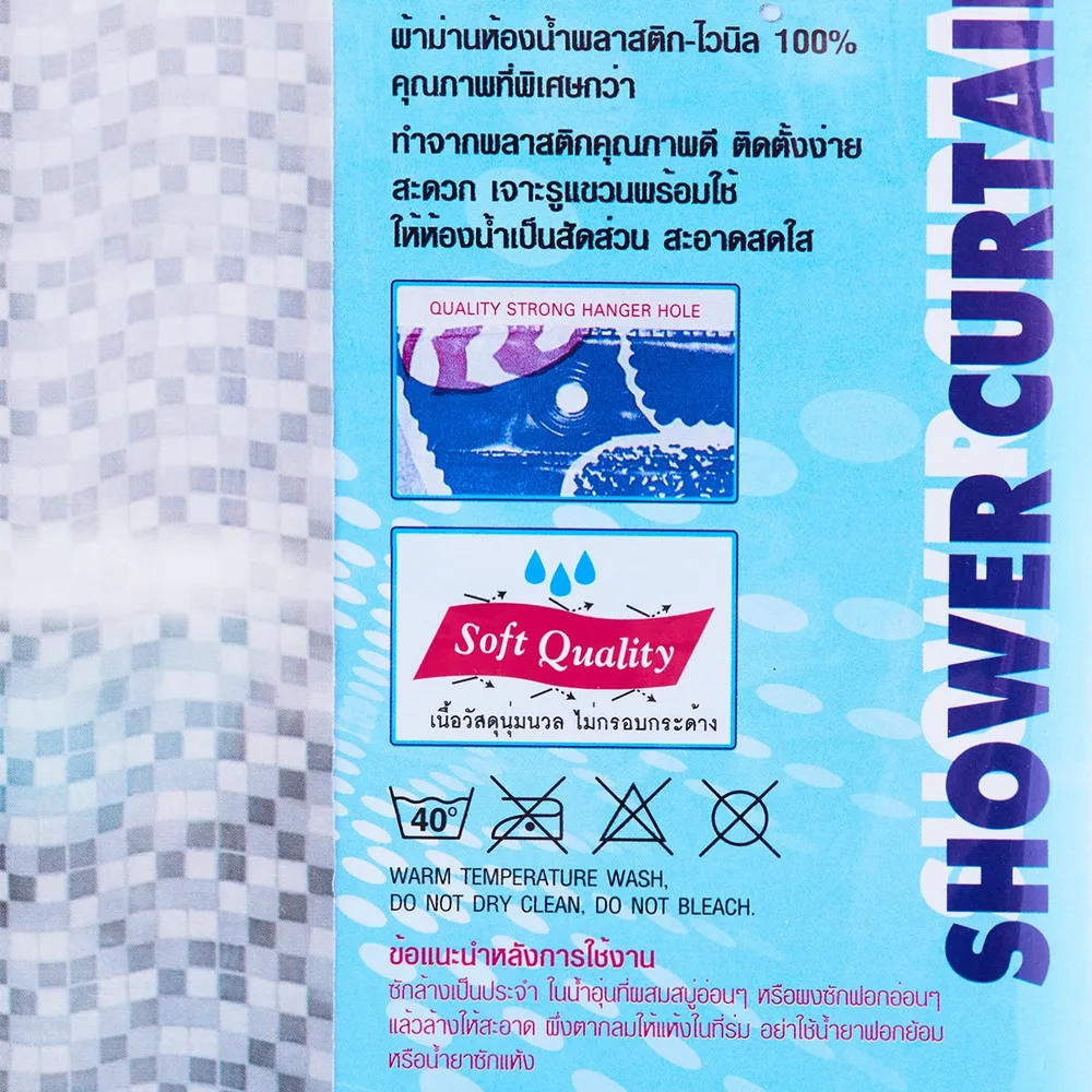 บ๊าธธิน่า ม่านห้องน้ำพลาสติก PVC รุ่น SCP-2 ACUSTEX ลายตาราง ขนาด 180x180 ซม.