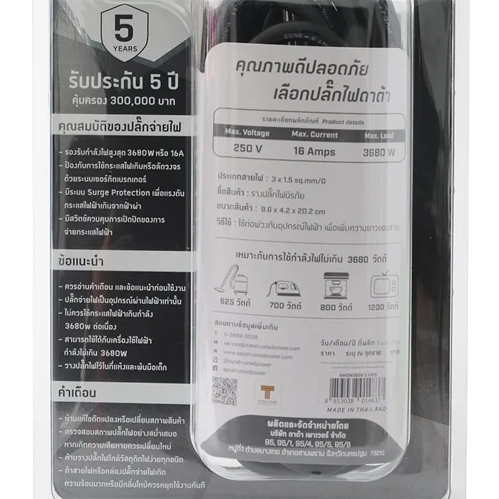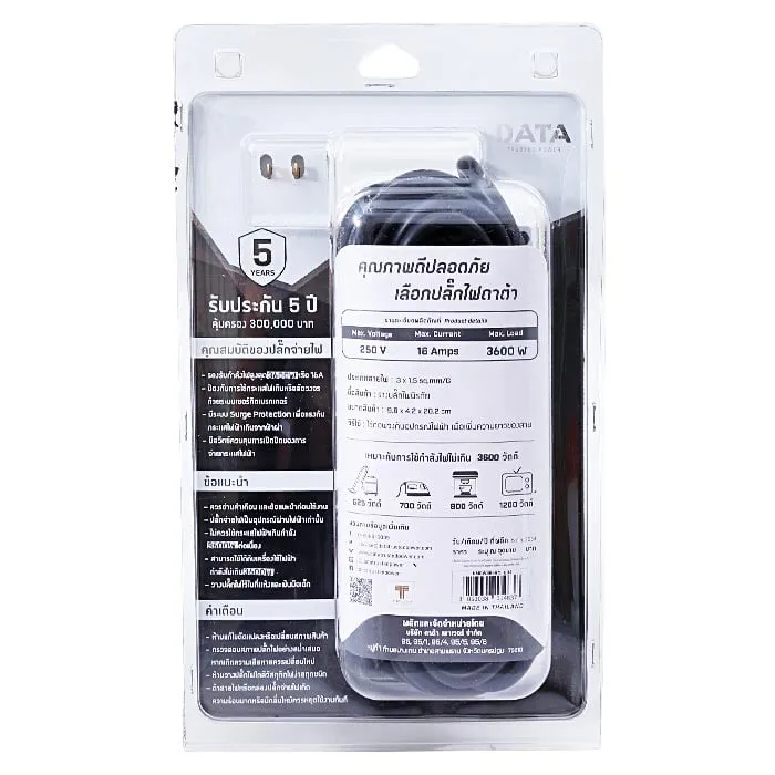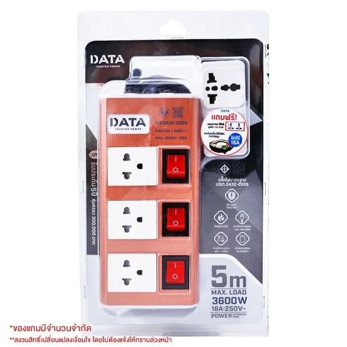ดาต้า ปลั๊กไฟ 3 ช่อง 3 สวิตช์ 2 USB ขนาด 5 ม.