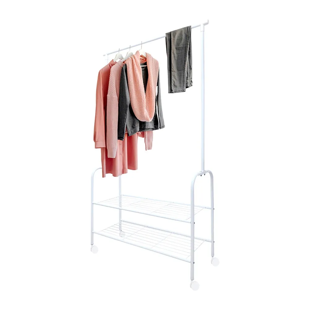 เบสิโค ราวแขวนเสื้อผ้าพร้อมชั้นวาง รุ่น KT-EP25 สีขาว