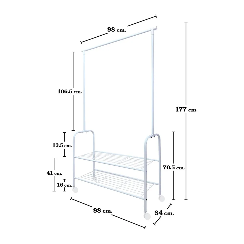 - ราวแขวนผ้าทรงสูงพร้อมชั้นวางตะแกรงเหล็ก 2 ชั้น<br />