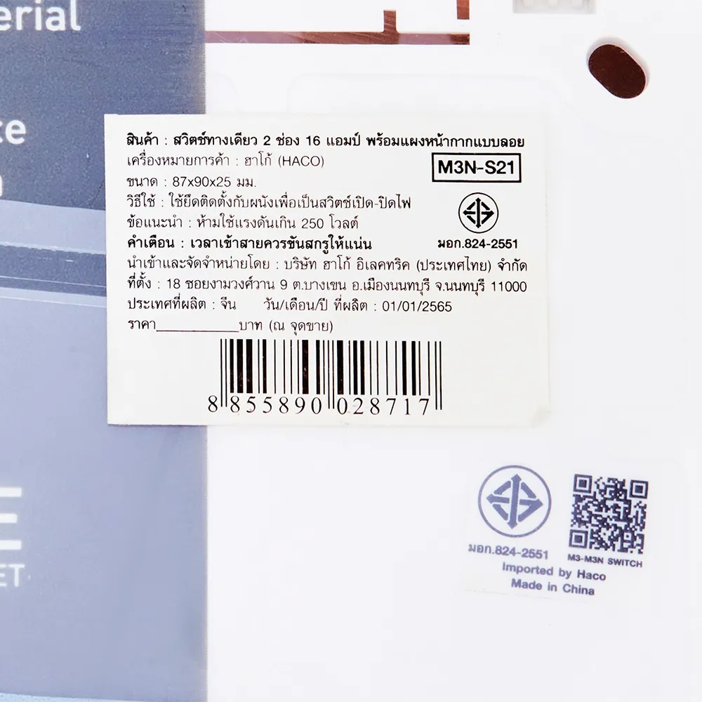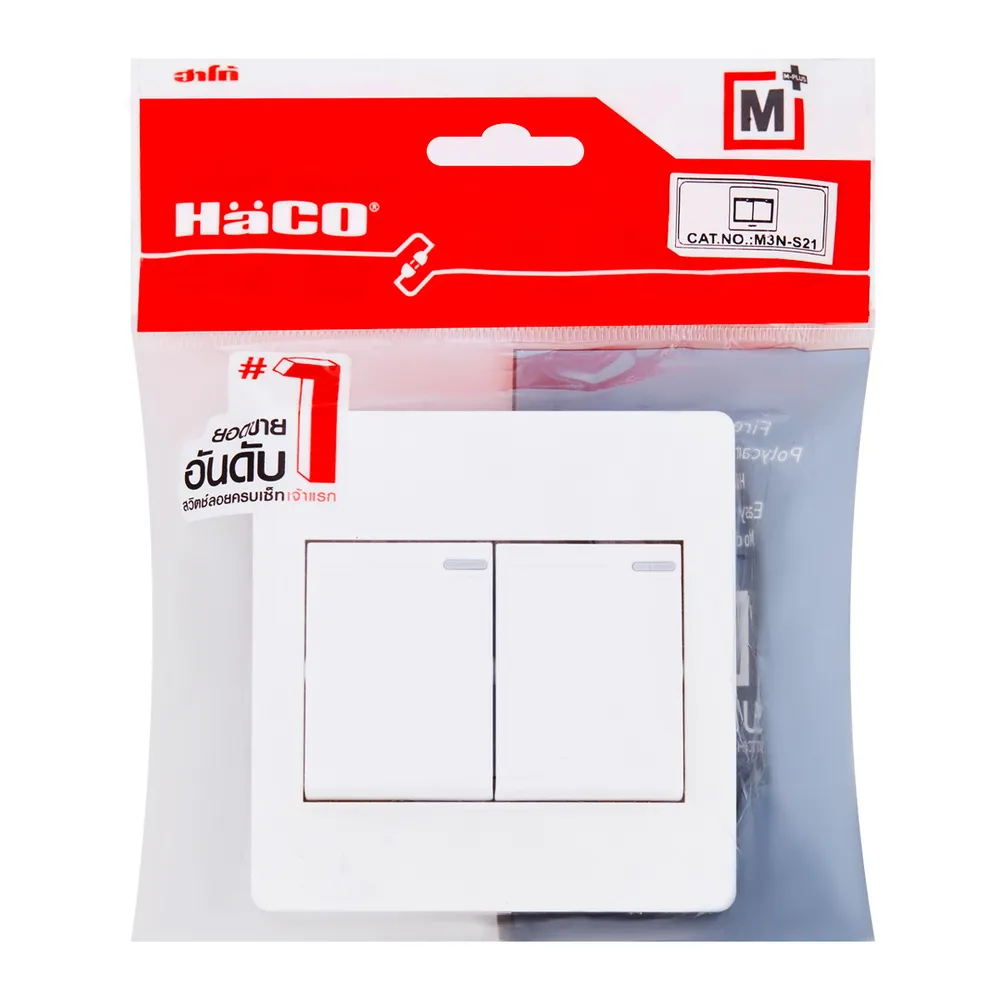 ฮาโก้ สวิตช์ทางเดียว 2 ช่อง 16 แอมป์ พร้อมแผงหน้ากากแบบลอย