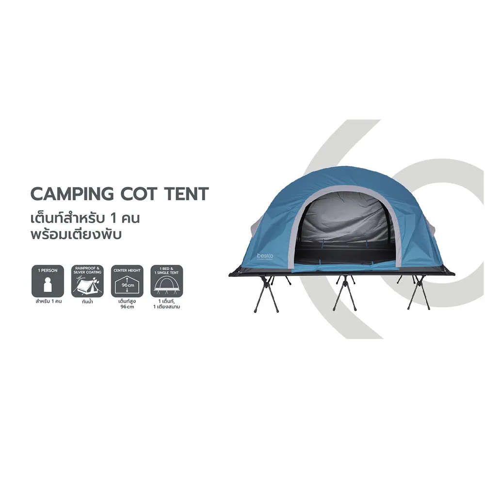 เบสิโค เต็นท์+เตียงพับได้สำหรับ 1 คน รุ่น CGBC91103B สีน้ำเงิน