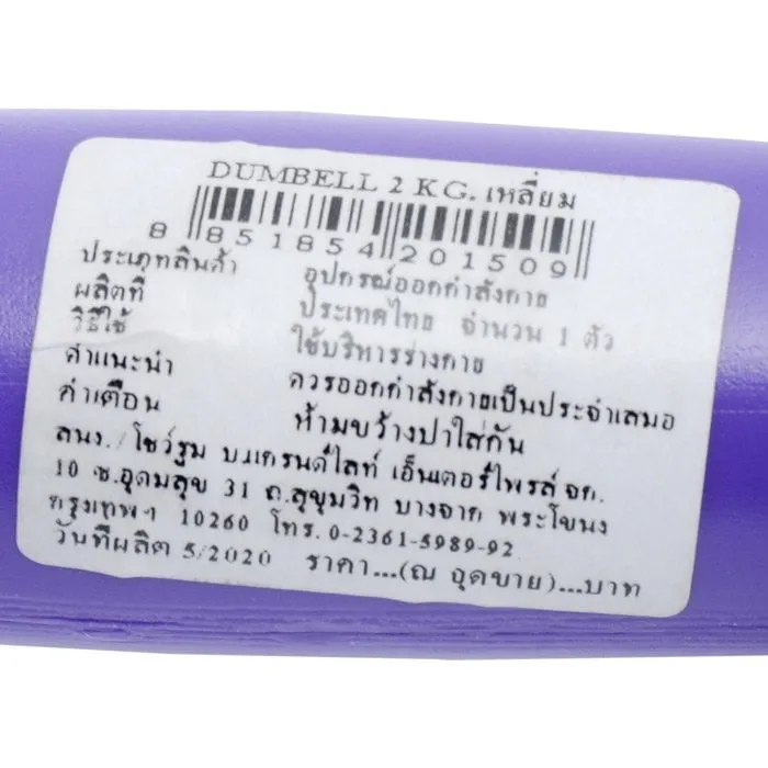 ดัมเบลพลาสติกทรงเหลี่ยม ขนาดน้ำหนัก 2 กก.ที่มีสีสันสวยงาม ซึ่งมาพร้อมความแข็งแรงทนทาน เพื่อสร้างความแข็งแกร่งแก่ข้อมือและปลายแขน เพิ่มแรงบีบของฝ่ามือทั้งสองข้าง รวมถึงช่วยกระชับกล้ามเนื้อลำตัวส่วนบน ทั้งกล้ามเนื้ออก กล้ามเนื้อสะบัก และกล้ามเนื้อด้านข้างลำตัวได้ด้วย<br />