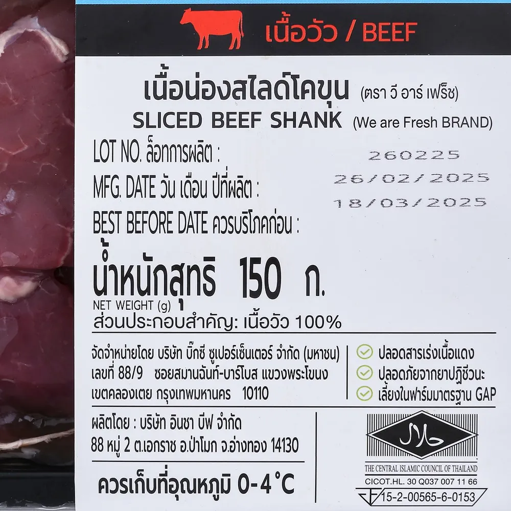 วี อาร์ เฟร็ช เนื้อน่องสไลซ์โคขุน 150 ก.