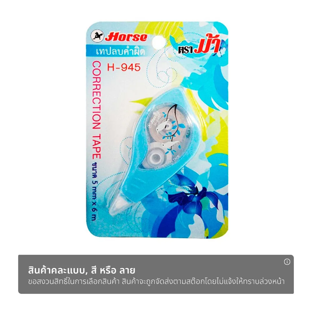 ตราม้า เทปลบคำผิด รุ่น H-945 ขนาด 5 มิลลิเมตร ยาว 6 เมตร (สินค้าคละสี ไม่สามารถเลือกได้)