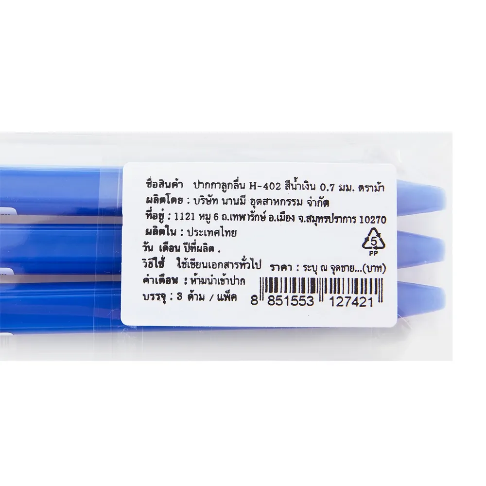 ตราม้า ปากกาลูกลื่นสีน้ำเงิน 0.7 มม. รุ่น H-402 แพ็ค 3