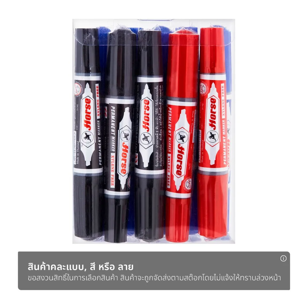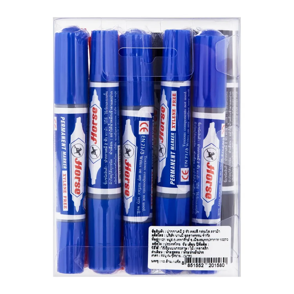 ตราม้า ปากกาเคมี 2 หัว คละสี แพ็ค 10