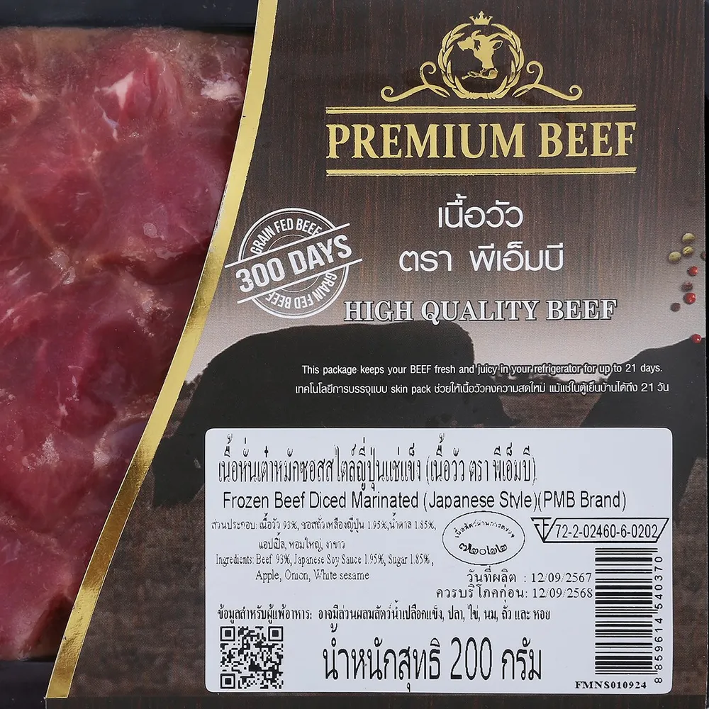 พีเอ็มบี เนื้อหั่นเต๋าหมักซอสญี่ปุ่น 200 ก.