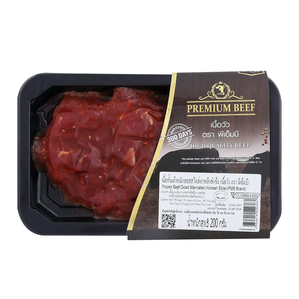 <p>พีเอ็มบี เนื้อหั่นเต๋าหมักซอสเกาหลี 200 ก.<br />