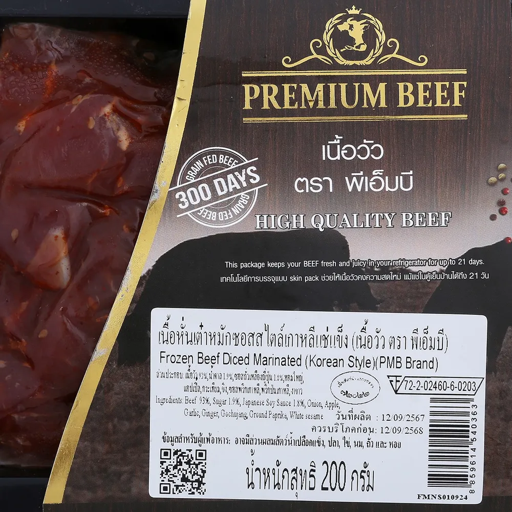 พีเอ็มบี เนื้อหั่นเต๋าหมักซอสเกาหลี 200 ก.