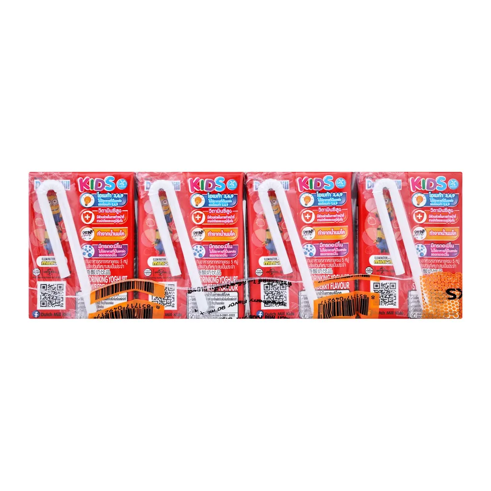 ดัชมิลล์ คิดส์ โยเกิร์ตพร้อมดื่มยูเอชที รสสตรอว์เบอร์รี่ 90 มล. x 4 ชิ้น