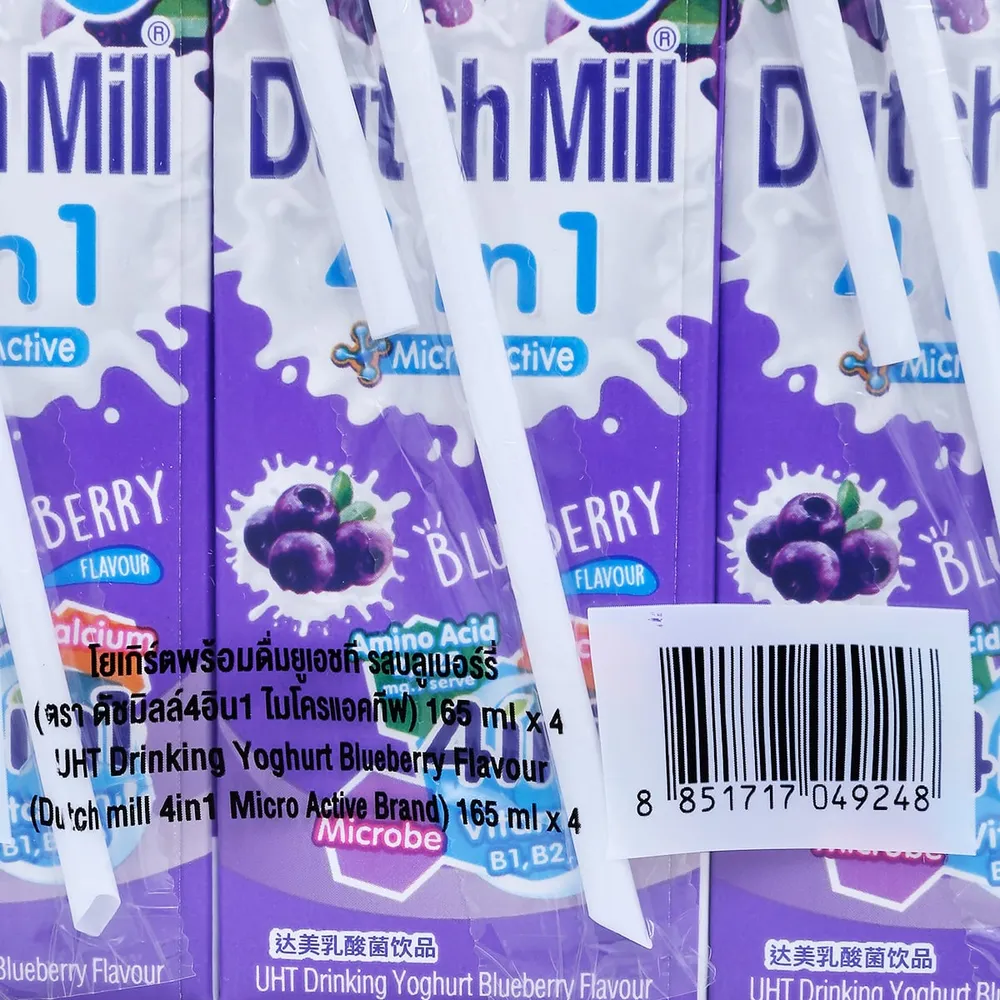 ดัชมิลล์ นมเปรี้ยวยูเอชที รสบลูเบอร์รี่ 165 มล. x 4 ชิ้น