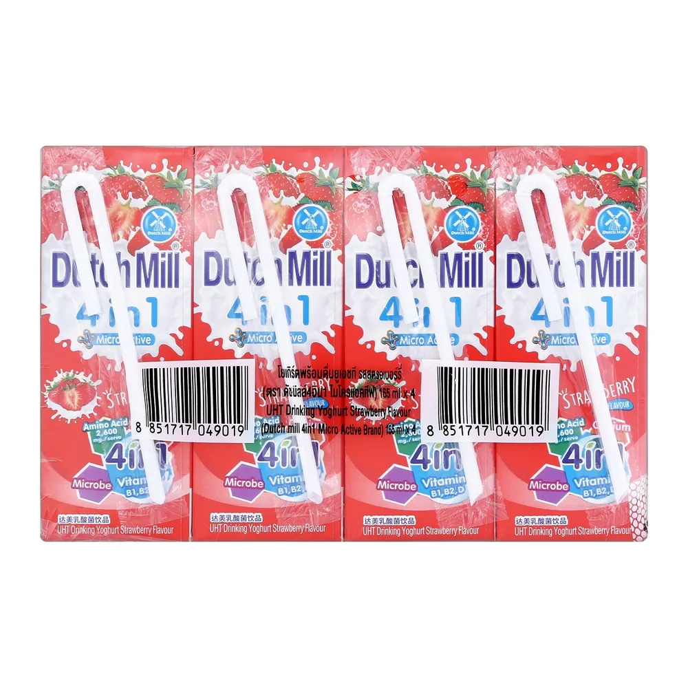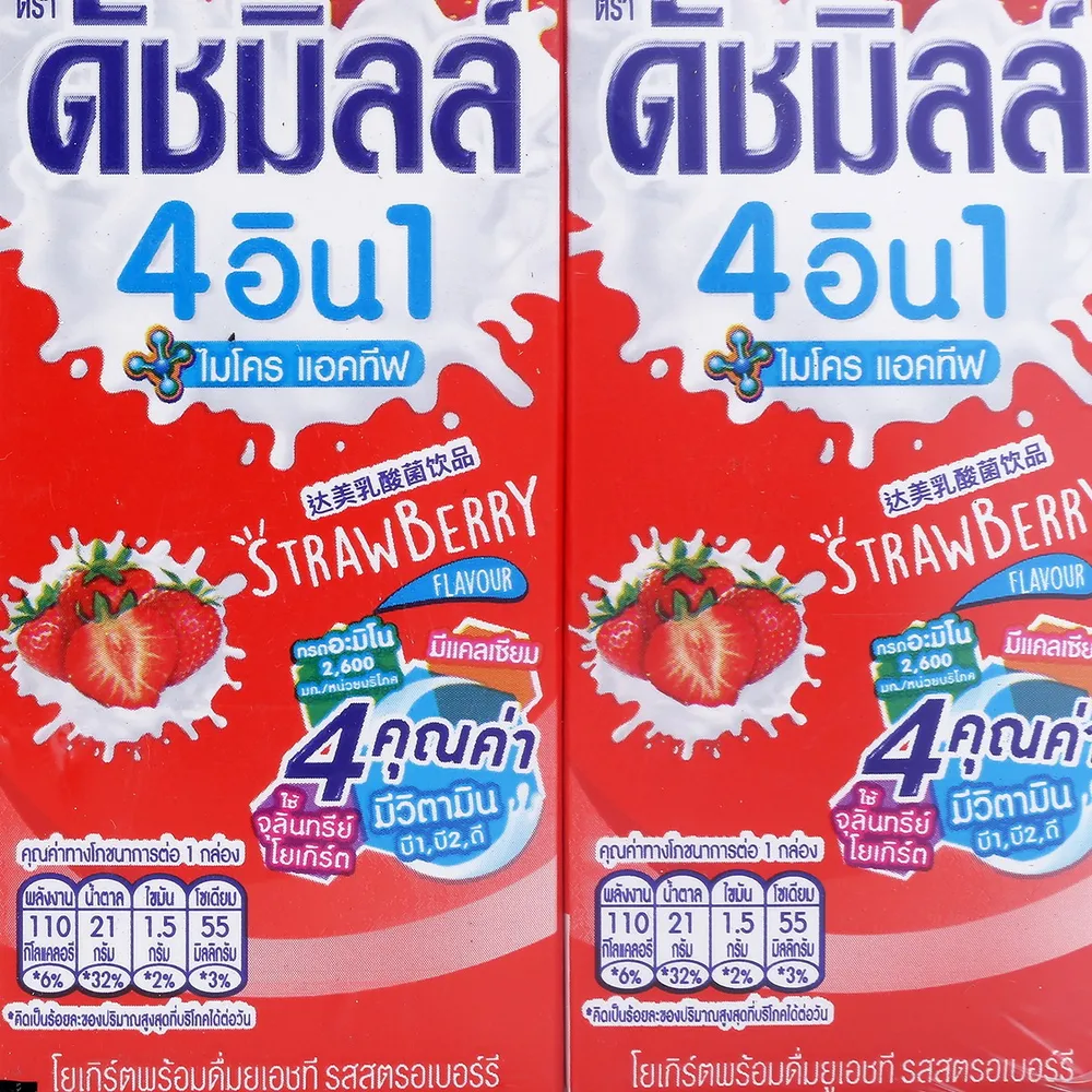 - ดัชมิลล์ 4 อิน 1 ไมโคร แอคทีฟ โยเกิร์ตพร้อมดื่มยูเอชที รสสตรอว์เบอร์รี่<br />
