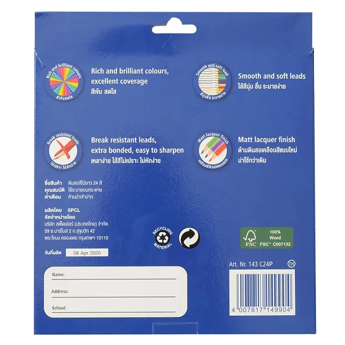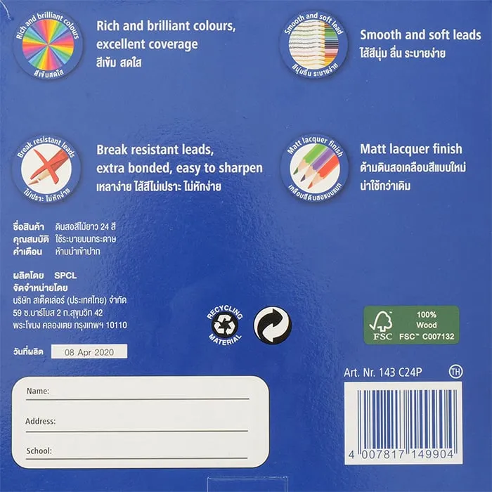 สเต็ดเล่อร์ ดินสอสีไม้แบบยาว 24 สี รุ่น 143C2410TH (สินค้าคละลาย ไม่สามารถเลือกได้)