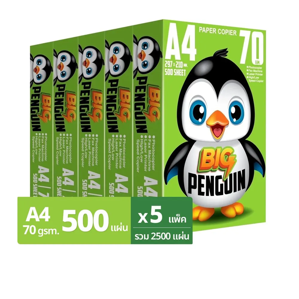 บิ๊กเพนกวิน กระดาษถ่ายเอกสาร ขนาด A4 หนา 70 แกรม 500 แผ่น แพ็ค 5 ชิ้น