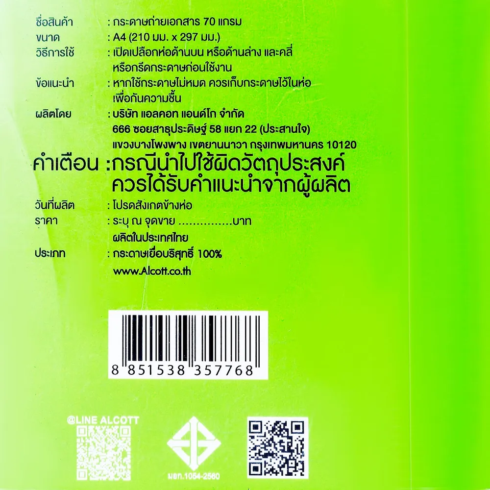 - เนื้อกระดาษเรียบลื่น สม่ำเสมอ ไม่ติดเครื่องขณะใช้งาน<br />