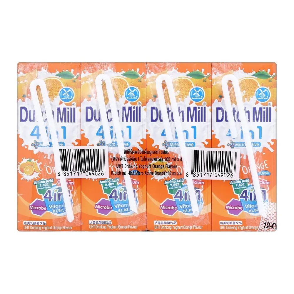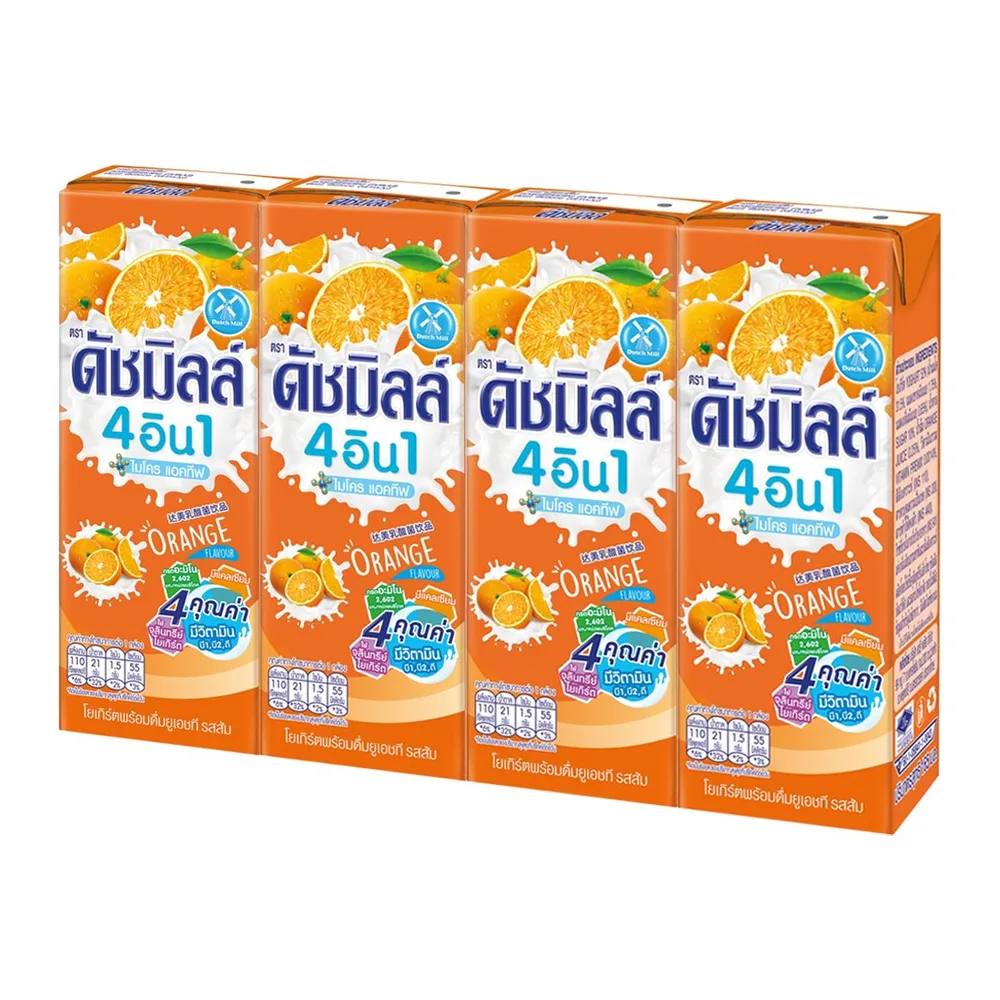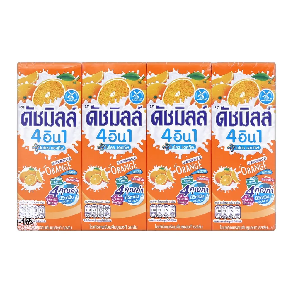 ดัชมิลล์ 4อิน1 ไมโคร แอคทีฟ โยเกิร์ตพร้อมดื่มยูเอชที รสส้ม 165 มล. x 4 ชิ้น