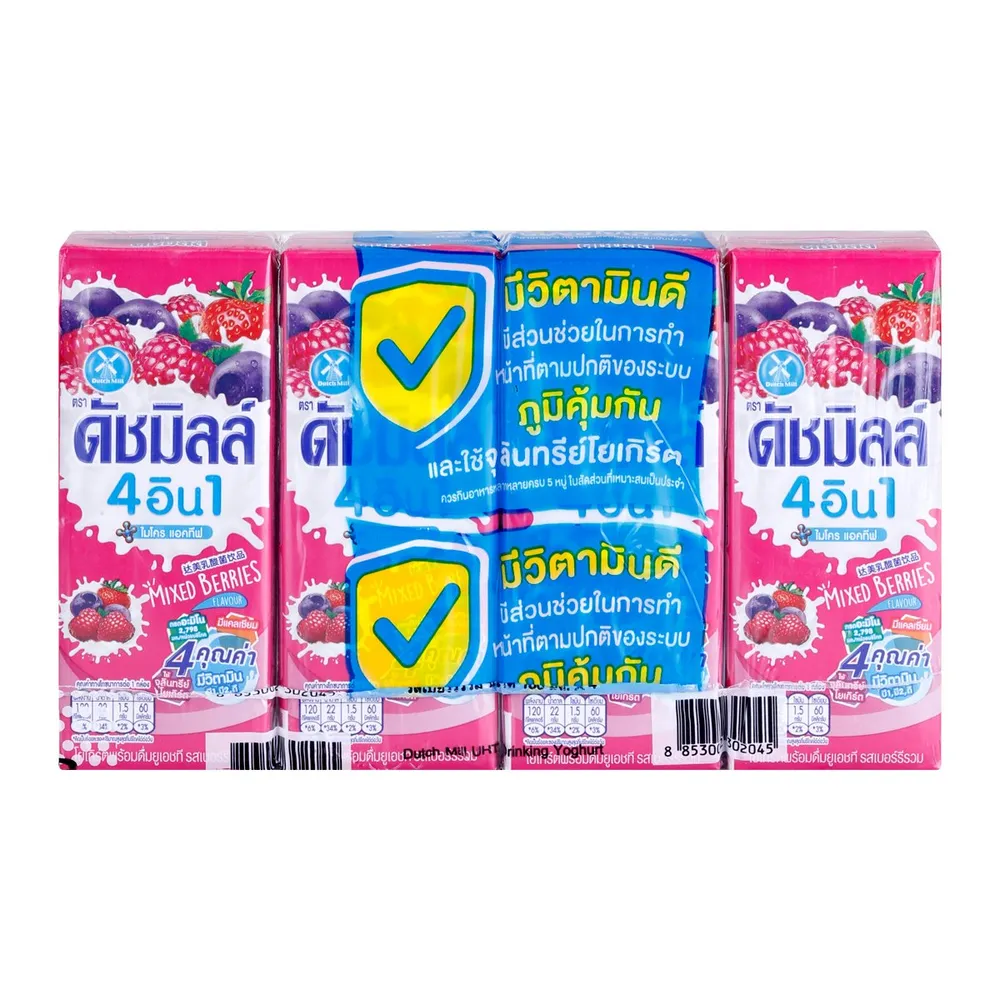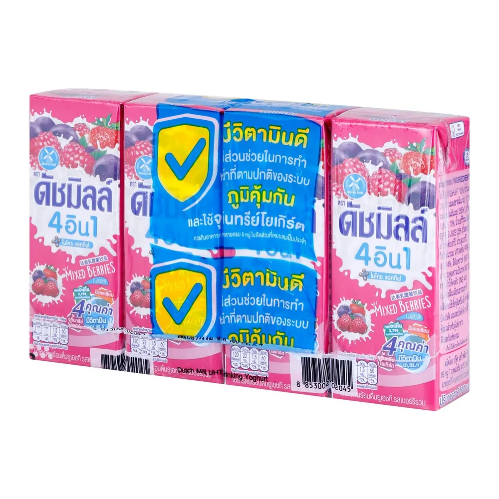 ดัชมิลล์ 4อิน1 ไมโคร แอคทีฟ โยเกิร์ตพร้อมดื่มยูเอชที รสเบอร์รี่รวม 165 มล. x 4 ชิ้น