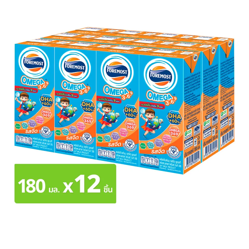 โฟร์โมสต์ โอเมก้า 369 นมยูเอชที รสจืด 180 มล. แพ็ค 12