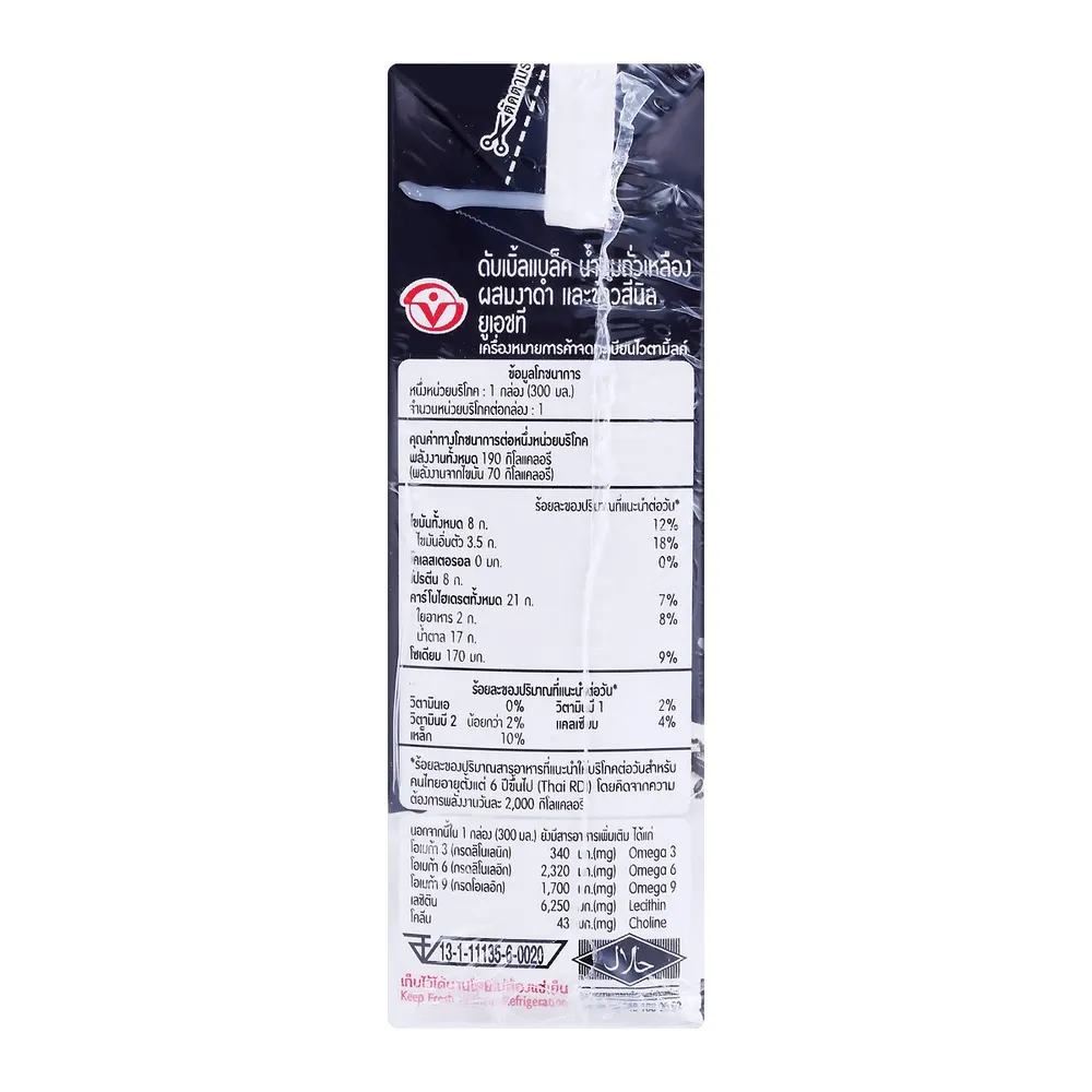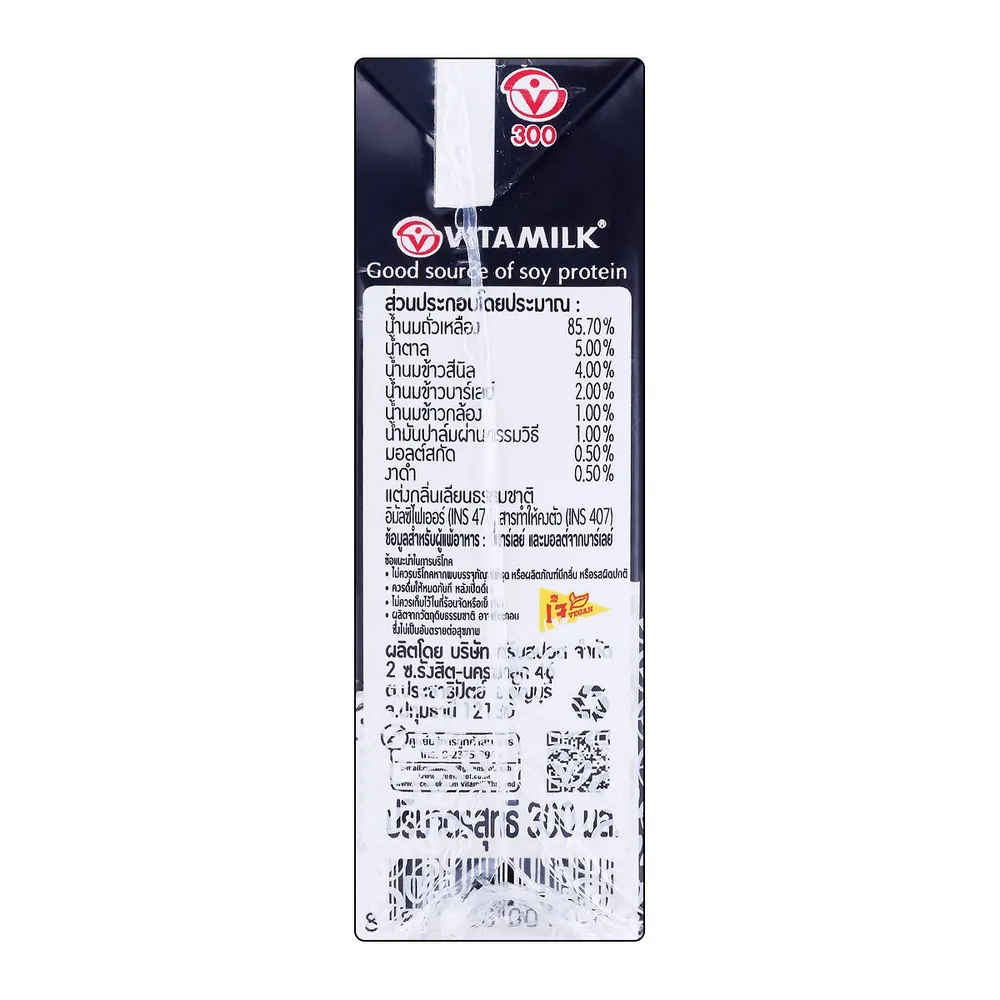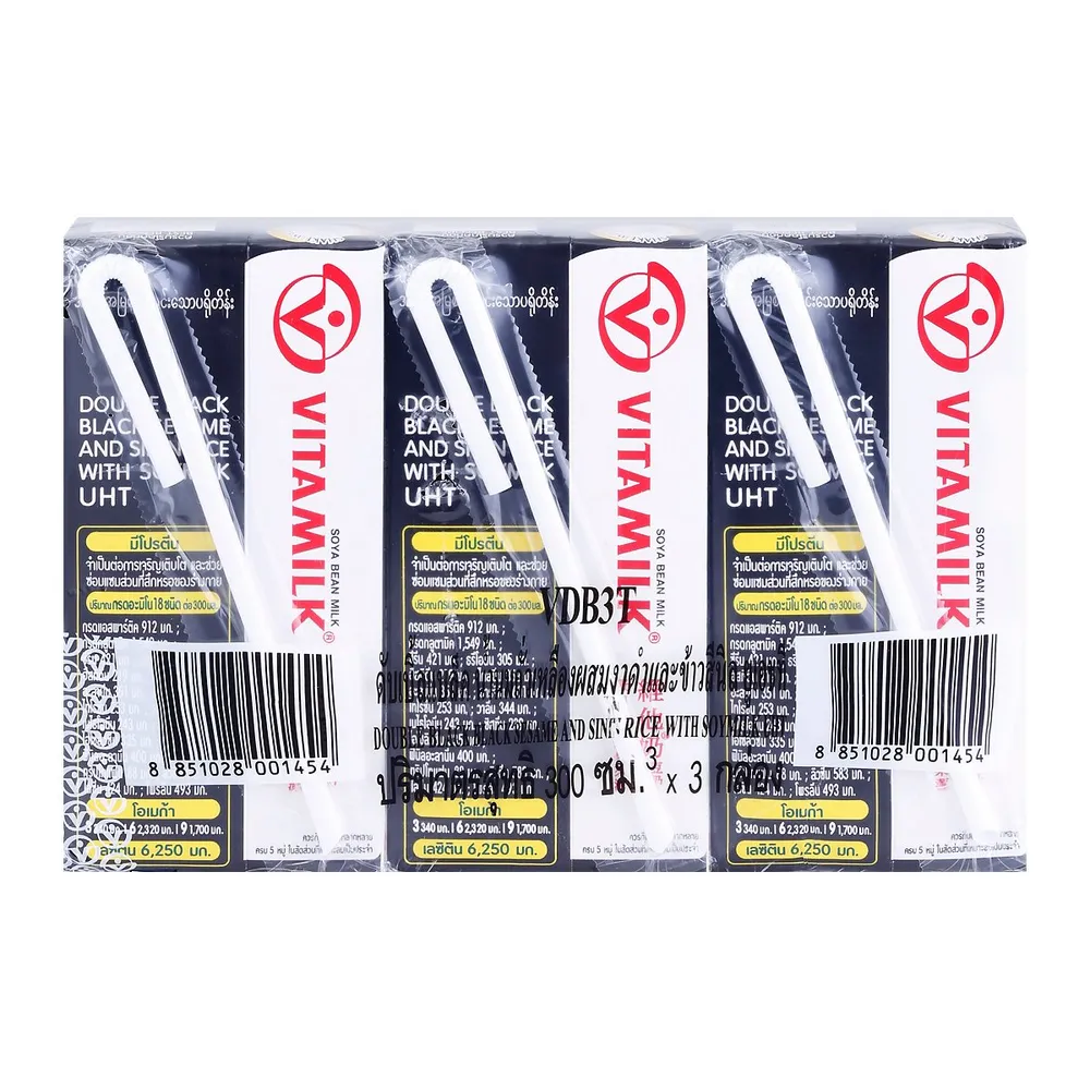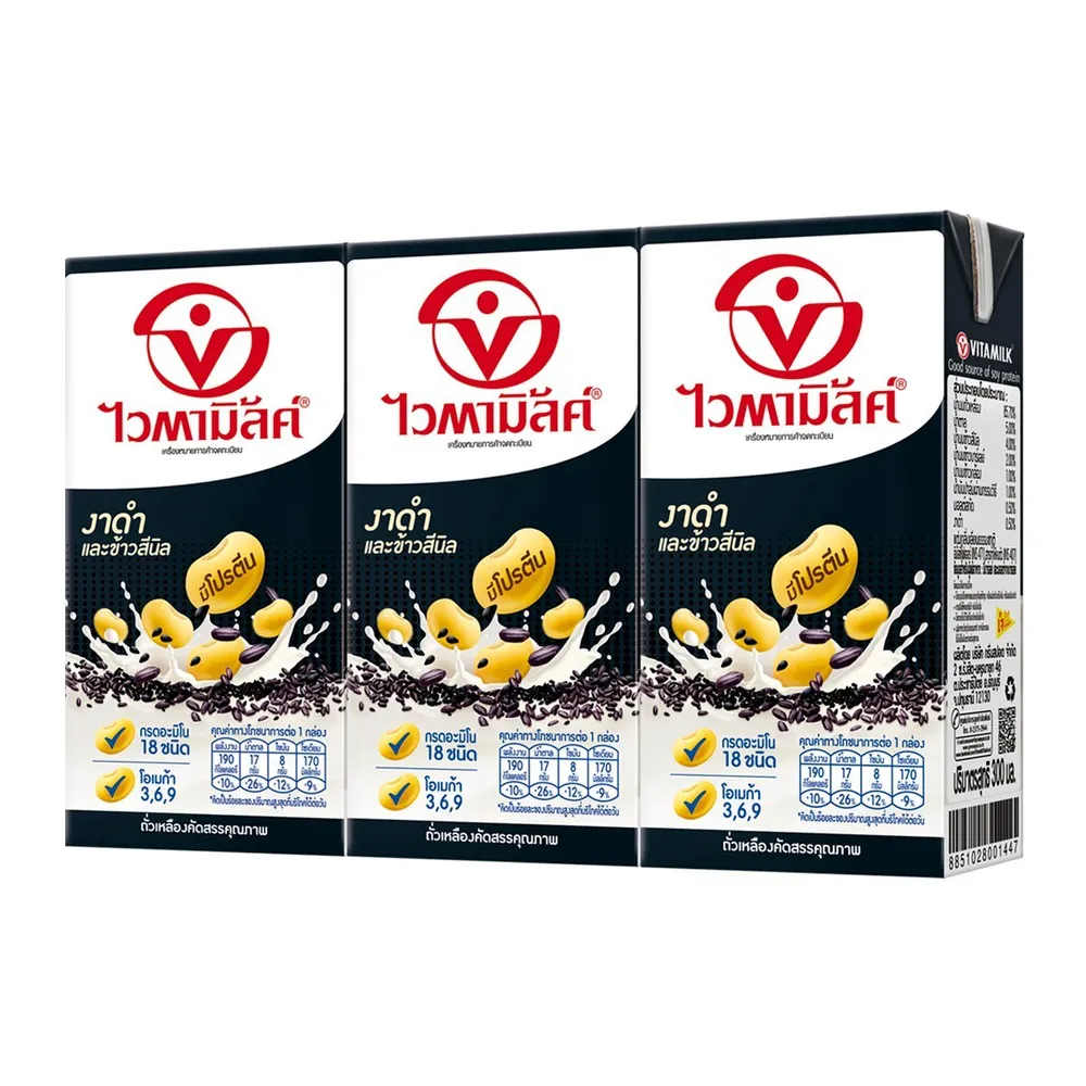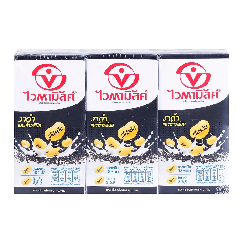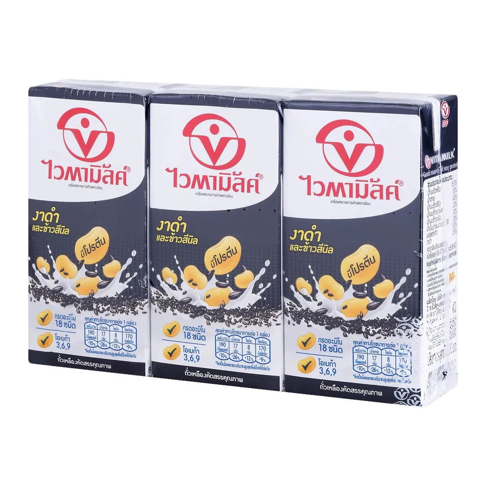 ไวตามิ้ลค์ นมถั่วเหลือง ยูเอชที สูตรงาดำและข้าวสีนิล 300 มล. x 3 ชิ้น