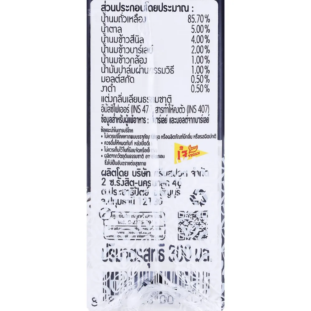 ไวตามิ้ลค์ นมถั่วเหลือง ยูเอชที สูตรงาดำและข้าวสีนิล นมถั่วเหลืองรสชาติกลมกล่อม มีคุณค่าวิตามินและแร่ต่างๆ เป็นแหล่งของโปรตีนช่วยให้อิ่มสบายท้อง ไม่ว่าจะดื่มเวลาไหน ก็สะดวกและอิ่มอร่อยไม่แพ้กัน<br />