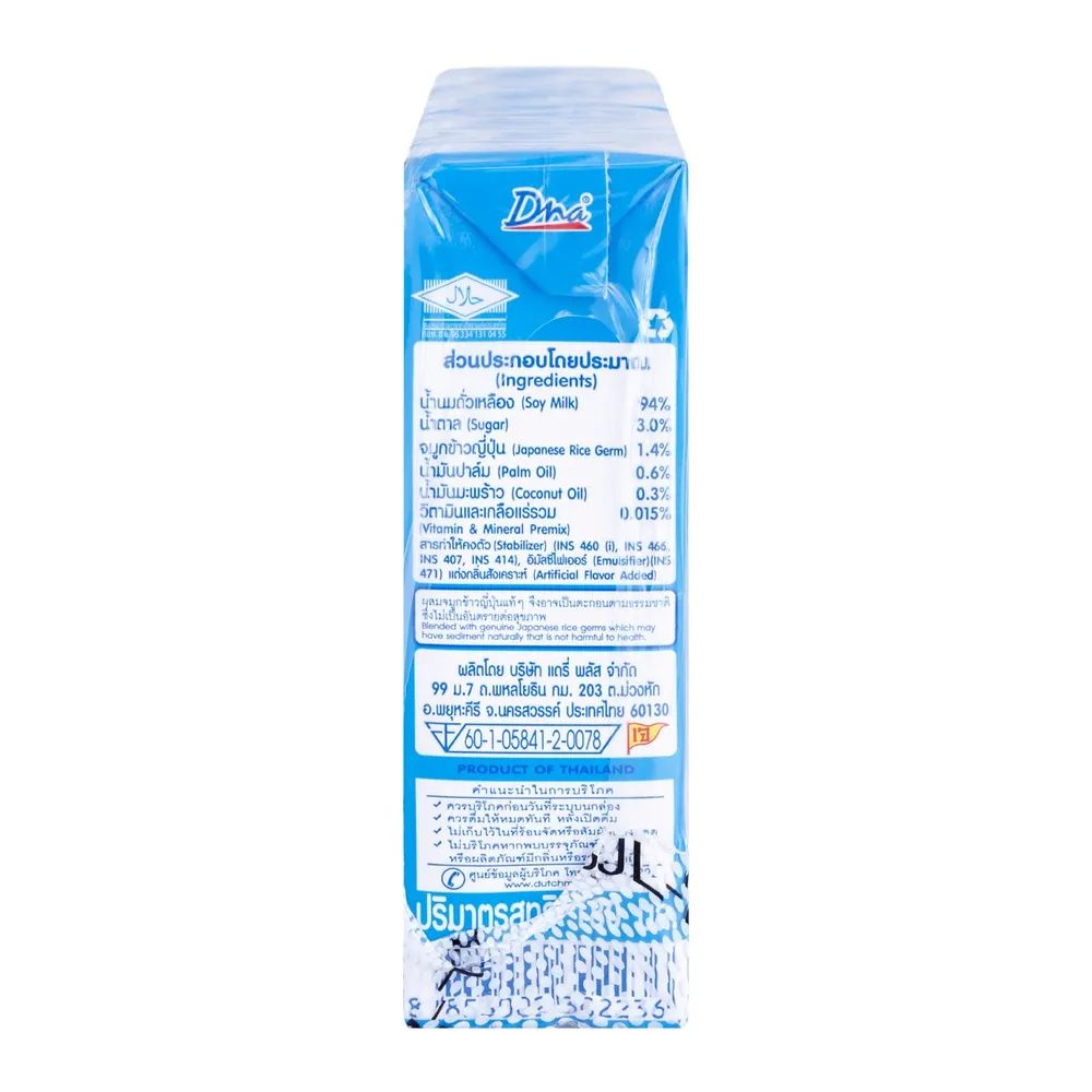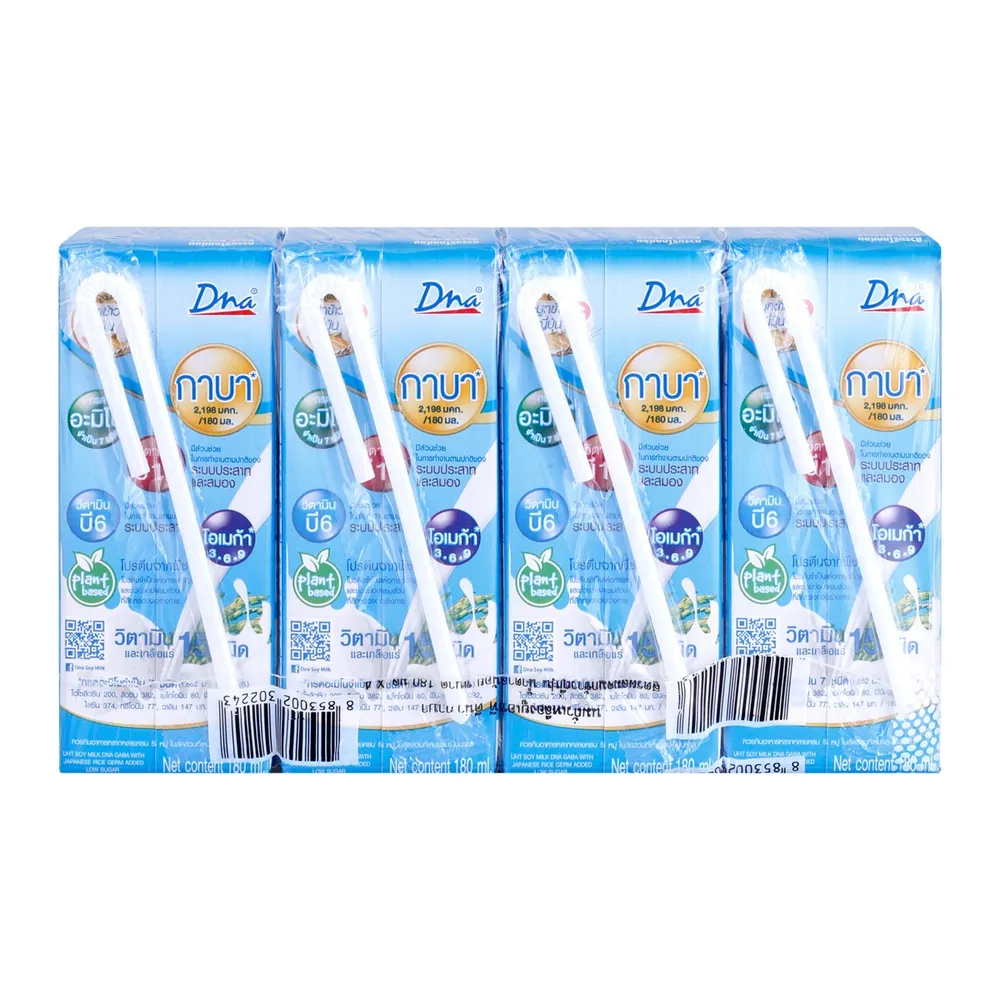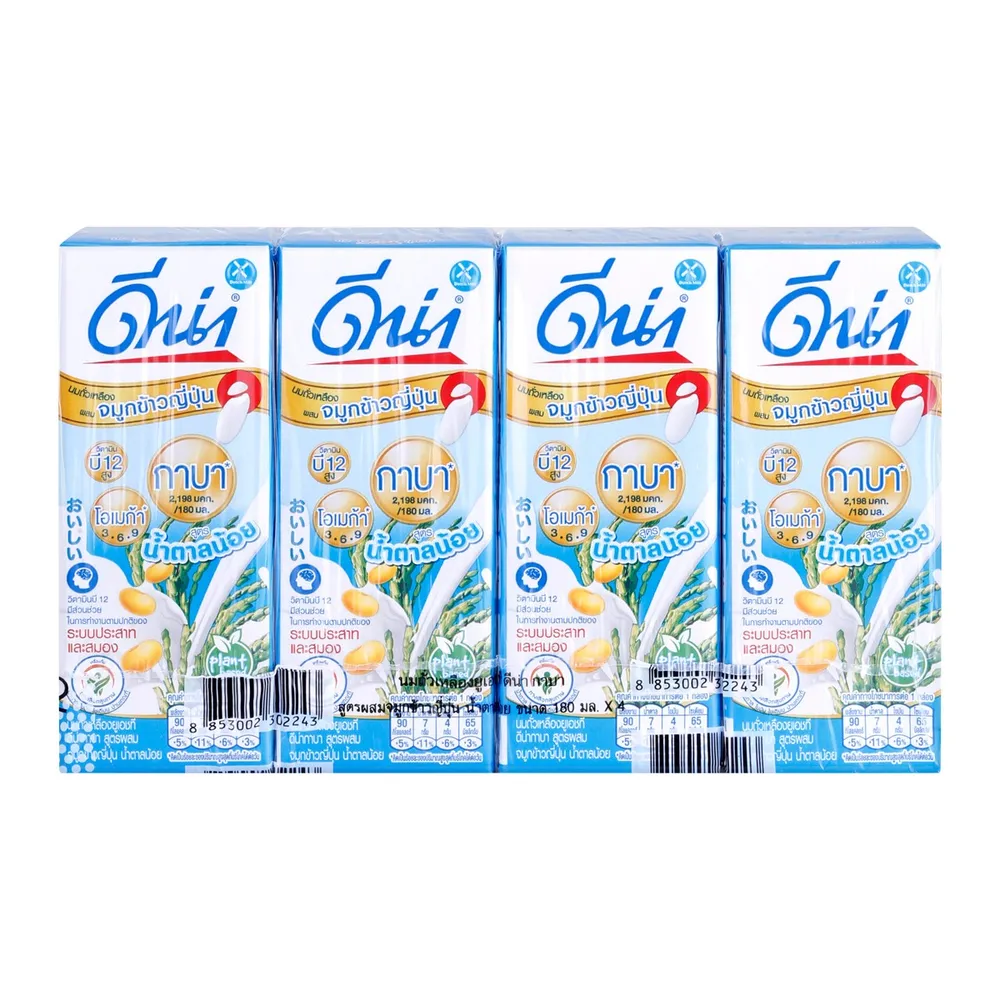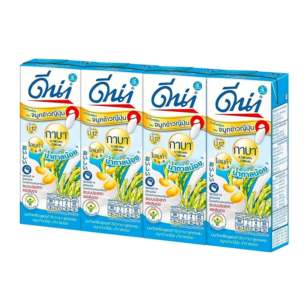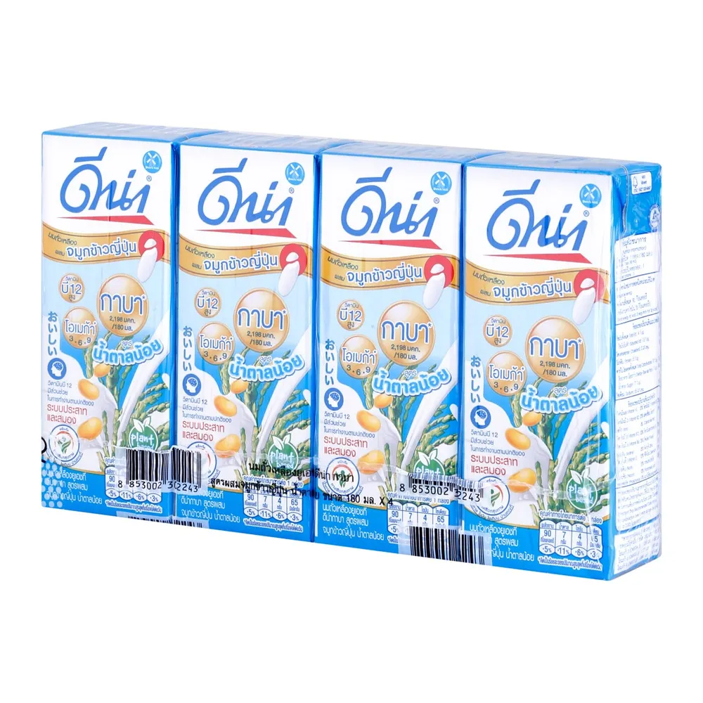 ดีน่า กาบา นมถั่วเหลืองยูเอชที สูตรผสมจมูกข้าวญี่ปุ่น น้ำตาลน้อย เจ 180 มล. X 4 ชิ้น