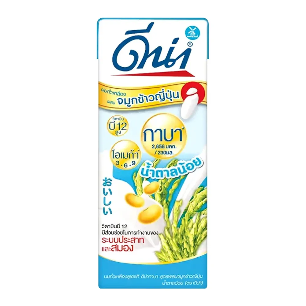- ดีน่า กาบา นมถั่วเหลืองยูเอชที สูตรผสมจมูกข้าวญี่ปุ่น น้ำตาลน้อย เจ<br />