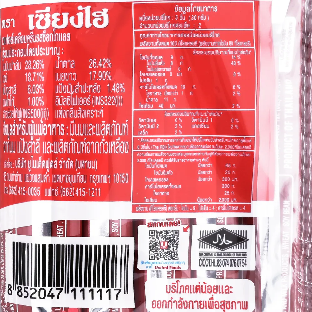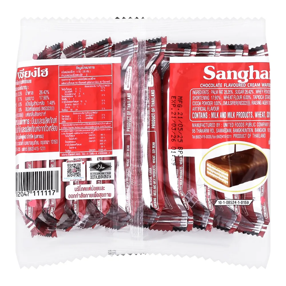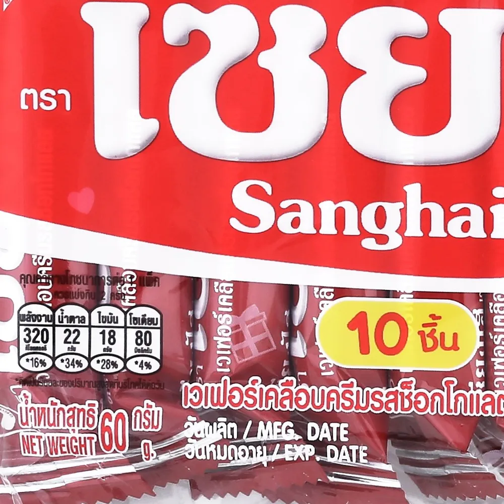 - เวเฟอร์เคลือบครีมรสช็อกโกแลต ตราเซียงไฮ<br />